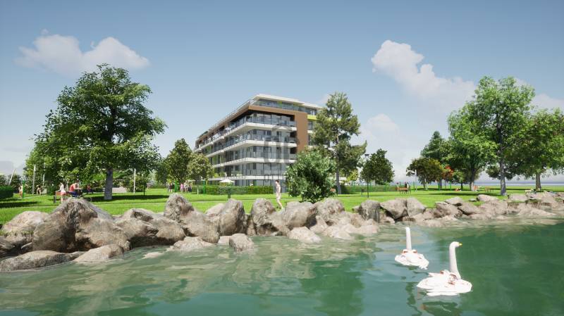 Balaton szerelmeseinek!Új építésű panorámás társasház épült Siófok Ezüstpartján.Már csak pár darab lakás elérhető! Frontlakás!Egyeztessünk időpontot megtekintésre hogy saját szemével győződjön meg a lakás adottságairól!A véglegessé vált építési engedély alapján megépülő lakások vételárát a hatályos jogszabályoknak megfelelően 5 %-os áfa terheli. A banki hitelek és kedvezmények szempontjából a lakások új építésű lakásnak minősülnek.Siófok ezen hangulatos, érintetlen panorámás részén, a Liszt Ferenc sétányon, a gondos és alapos tervezői munka eredményeként kerül megvalósításra a társasház.Az ötemeletes apartmanház a Balatonra merőlegesen helyezkedik el, így biztosítva a lakásokból az örök balatoni panorámát boldog tulajdonosainak. A társasház tetején korlátozott számú exkluzív panorámás grill és napozó tetőterasz kerül kialakításra, hogy a lehető legnagyobb privátszférát biztosítsák a tulajdonosainak és alkalmi vendégeiknek, ahol egyedi vízvétel és áramvétel biztosítása mellett minden lehetőség adott lesz egy kellemes, panorámás vízparti, naplementés parti élvezetéhez.Ez a 4. emeleti front lakás a Balaton egész medencéjére nyújt panorámát.FRONT LAKÁS!Elosztása:3 háló, nappali, konyha, fürdőszoba +WC,WC,, előtér, gardrób, háztartási helyiség, közlekedő, teraszBővebb információért keressen elérhetőségeimen.Balaton parti ingatlanok széles választékával várom megkeresését.Balaton Panoráma kertkapcsolat medence szabad strand vízpart új lakásProjekt bemutatásaAz ingatlan fekvése, beépítésének arányai egy szellős, nagy felületű lakóövezet további fejlesztését teszik lehetővé ezen a 90 000 m2-es, kivételes adottságú területen, ahol Siófokon egyedülálló módon, panorámás vízparti lakások helyezhetők el.A véglegessé vált építési engedély alapján megépülő lakások vételárát a hatályos jogszabályoknak megfelelően 5 %-os áfa figyelembevételével alakítottuk ki. A banki hitelek és kedvezmények szempontjából a lakások új építésű lakásnak minősülnek.Siófok ezen hangulatos, érintetlen panorámás részén, a Liszt Ferenc sétányon, a gondos és alapos tervezői munka eredményeként kerülnek megvalósításra a közvetlen vízparti új építésű társasházaink. A tervezés során fontos szempont volt a praktikum, a használhatóság, a fenntarthatóság, melyet a korábban általunk értékesített 650 siófoki lakás és nyaraló tervezésének és értékesítésének tapasztalata szült, megannyi vásárlói visszajelzés alapján.Első új építésű ütemünk, a Lakópark, második otthont kínál a Balaton szerelmeseinek, ahol akár egész évben élvezhetik a korszerű apartmanok kényelmét és a természet közelségét. A lakások közvetlen vízparti elhelyezkedése mellett az igényes tervezés, a minőségi kivitelezés az apartmanok remek kihasználhatóságát és értékállóságát biztosítják az Ön számára is. Az ötemeletes apartmanház a Balatonra merőlegesen helyezkedik el, így biztosítva a lakásokból az örök balatoni panorámát boldog tulajdonosainak. A társasház tetején korlátozott számú exkluzív panorámás grill és napozó tetőterasz kerül kialakításra, hogy a lehető legnagyobb privát szférát biztosítsák a tulajdonosainak és alkalmi vendégeiknek, ahol egyedi vízvétel és áramvétel biztosítása mellett minden lehetőség adott lesz egy kellemes, panorámás vízparti, naplementés rooftop party élvezetéhez.A beépítendő anyagok kiválasztásánál a magas minőség elengedhetetlen szempont volt. A lakáselválasztó falak fokozott hangszigetelésűek, az épület 15 cm vastag külső hőszigetelési rendszerrel lesz ellátva. A födémekben 4 cm vastag hő/hangszigetelő táblák akadályozzák meg a függőleges irányú hangterjedést. A lakások nappalijából és hálószobáiból a korlátlan panoráma élvezetét rozsdamentes szálcsiszolt oszlopokkal, kapaszkodókkal, ragasztott biztonsági üvegtáblákkal biztosítjuk.Az emeletek kényelmes megközelítését 2 db 8 és egy 13 személyes lift szolgálja ki. Nyílászáróink 3 rétegű üvegezéssel készülnek, külső oldalon antracit színben. A közös területeket, folyosókat, teraszokat I. osztályú szürke, fagyálló kőporcelán lapokkal burkoljuk. A lakások fűtését és hűtését központi LG Multi V-5 hőszivattyús rendszer látja el a 2023-as év energia szabványainak megfelelően, mely kivételesen energiahatékony üzemeltetést tesz lehetővé. A szobákba, nappalikba felszerelt beltéri egységek léghűtést és légfűtést biztosítanak, melynek köszönhetően rendkívül gyorsan hűtik le vagy fűtik fel a helyiségeket.A társasház lakói kizárólagos kerthasználatot kapnak a helyszínrajzon megjelölt területre, ahol a több generációs családok kikapcsolódása érdekében, a beruházás keretein belül gyermekjátszóteret és kültéri medencéket biztosítunk ezen két társasház tulajdonosai számára.Az ingatlan előtt húzódó több mint 3 km hosszú szabadstrand, gondozott zöldterületekkel, parti sétányokkal, sportolási lehetőséget kínáló kölcsönző helyekkel, valamint igényesen kialakított büfékkel szolgálja ki az itt nyaralók igényeit.A lakópark területére a biztonság érdekében egyedi azonosítás után lehet csak belépni.