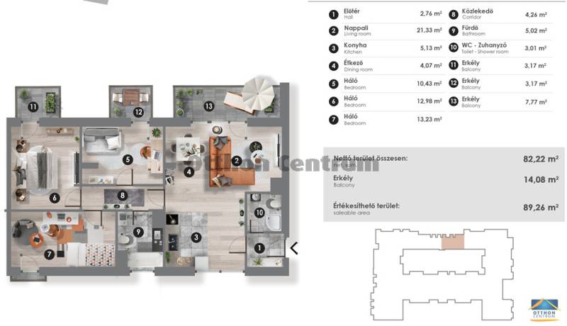 Projekt bemutatásaA kiváló elhelyezkedésű WestGate 3 lakópark a Dózsa György úttól és a Lehel úttól pár lépésre található, így a Belváros könnyedén megközelíthető autóval és tömegközlekedéssel egyaránt. A 4 ütemben épülő lakóparkban összesen közel 1000 lakás kerül megépítésre, melyből az első ütem elkészültével több mint 200 lakás átadása már megtörtént, a második és harmadik ütem építése folyamatban van.1-2-3-4 szobás lakástípusok elérhetőek, a csendes belső kertre néző családi otthontól a kisvárosias utcára néző lakáson keresztül az indusztriális-városi panorámát kedvelőkig mindenki megtalálhatja a hozzá illő ingatlant.A jelenleg legkorszerűbb hőszivattyús rendszer lehetővé teszi az otthonok energiatakarékos fenntarthatóságát. Lakásonként hőmennyiségméréssel ellátott felület fűtés-hűtés kerül kialakításra, interneten keresztül távolról elérhető és programozható, valamint kézi hőmérsékletállítási lehetőséggel,rejtett gépészeti vezetékekkel.A lakásokba okosotthon rendszer kerül beépítésre. Az okosotthon rendszer biztosítja a lakások magasabb szintű és hatékony üzemeltetését. A Vevőnek lehetősége van három, különböző típusú okosotthon rendszer (alapcsomag) közül választani, amelyek egyike sem eredményezi a lakások vételárának növekedését. Igény esetén felár ellenében lehetőség van beépített bútorok megrendelésére is. A lakásokhoz mélygarázsban biztosított parkoló vásárolható, illetve emeleti tárolók is leköthetők.Extrák az épületben: közösségi nappali, könyvtár, közösségi autó, fészer és csomagpont valamint az összes lakás okosotthon-rendszerrel allátva kerül átadásra.Rohamosan fejlődő környék, remek befektetés!Fizetési ütemezés:20% - szerződéskötéskor80% - átadáskor (használatbavételi engedélyt követően)Várható átadás: 2025.03.31.