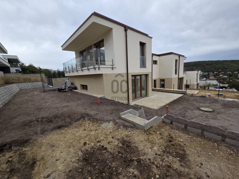 ARANYHEGYI VILLAPARK ÖRÖK PANORÁMÁVALEnergiatakarékos luxus ikerházak örök panorámával, GARÁZZSAL és további felszíni parkolókkal!A telket az Aranyhegy egyik legizgalmasabb részén található, ami kivételes lehetőségeket kínál.Egy karnyújtásnyira a várostól, mégis a természet közelében. Ez egy olyan közeg, ahol az intimitás adott, az okos otthon természetes, a luxus pedig garantált.Amikor megállsz majd a kapu előtt, a biztonságirendszer azonosít és beenged, a behajtón intelligens fények kísérnek végig a parkosított út mentén, hogy aztán egy igazi ékszerdoboz fogadjon a te igényeid szerint.Most pedig vesszünk el a részletekben.•Aranyhegyen új építésű prémium minőségű új ház, örök panorámával, nagy erkélyekkel, kertkapcsolattal és 1 állásos garázzsal rendelkezik.•Földszint amerikai konyhás nappalival dolgozó vagy hálószobával kerül kialakításra.•Kiszolgáló helyiségként megtalálható előtér, fürdő, külön WC, gardrób és háztartási helyiség.•Az emeleten 3 hálószoba és további 2 tágas fürdő áll a rendelkezésünkre.•Minden szoba erkélykapcsolatos, ahonnan csodás panoráma tárul elénk.•A házban található olyan fürdő, aminek kertkapcsolata van, így későbbiekben ki lehet alakítani egy kis wellness sarkot oly módon, hogy a fürdőbe szaunát építünk, a kertbe pedig jakuzzi-t telepítünk.•Jelenleg az alaprajzi elrendezés, burkolatok, falszínek még saját igényeire szabható!•Építés megkezdése: 2024. év I. negyedév•Ház átadása: PÁR HÉTEN BELÜLMűszaki tartalomSzerkezet•Vasbeton sávalap és lemezalap;•Vázkerámia fő és válasz falazatok;•Monolit vasbeton közbenső és zárófödém;Nyílászárók•3 rétegű üvegezésű, több légkamrás homlokzati oldalon aranytölgy színű műanyag•Motoros mozgatású alumínium redőnyök ELŐKÉSZÍTÉSE! (hőszigetelt redőnytok beépítése és elektromos betáp kiépítése);•CPL fóliás furatolt faforgácslap, teli kivitel 150.000,-Ft+ÁFA-ig.Gépészet•Az épület hőellátását levegő-víz hőszivattyú biztosítja;•Hőleadók központi mennyezet fűtés-hűtés és padlófűtés;•Fűtés-hűtés vezérlése helyiségszinten szobatermosztátokkal történik, távoli eléréssel online kapcsolat esetén;•Fürdőkbe kiegészítő fűtésként törölközőszárítós radiátor kerül elhelyezésre;•Használati melegvíz készítését villanybojler állítja elő;•Erős- és gyengeáramú hálózat•Lakás önálló napszakos és H tarifás mérővel rendelkezik;•Teljesítmény 3 x 20A;•Kaputelefon;•Alapfokú riasztórendszer telepítése földszinten, mozgás- és nyitásérzékelőkkel;•Kamerarendszer előkészítés;•Kábeltévé és internet előkészítés;•Villanysütő és főzőlap kiállás;•Fűtött garázslejáró;•Napelem előkészítése.Burkolatok•Hidegburkolatok 7.000,-Ft+ÁFA/m2•Melegburkolatok 6.000,-Ft+ÁFA/m2Alapáron felül rendelhető tételek igény esetén:Szauna telepítése;Jakuzzi telepítése;Kertépítés;Kert burkolatok építése;Kertvilágítás kiépítéseBiztonsági rendszerek telepítése (beléptető, riasztó és kamerarendszerek);Okosotthon telepítése;Szellőztető rendszer kiépítése;Napelemes rendszer telepítése;Stb.Élje át azt a luxust amit a hely és új otthona adhat. Várom hívását.