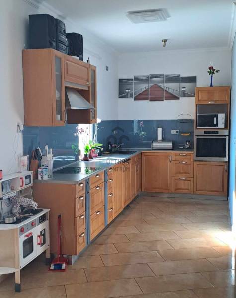 Ajka kertvárosi részén ,csendes új utcában eladó egy minden igényt kielégítő újszerű családi ház !Az ingatlan 2008-ban épült, minőségi színvonalon .A kiforrott megoldások jellemzik, minden kényelmi szempontot figyelembe véve.Lakótere 188 nm,a garázs 25nm.Az épület remek tájolású ,az év bármely időszakában a szobák napfényben részesülnek.Az ingatlanban kialakításra került egy nagyméretű,világos (45 nm) ,terasz és kertkapcsolatos nappali,5 hálószoba,2 fürdőszoba ,technikai helyiség ,nagy kamra, étkező,konyha.A ház nagyrészében padlófűtés került beépítésre,az egyenletes hőelosztás és a kellemes hőérzet miatt.Emellett radiátorok,egy nagyteljesítményű kandalló ,és egy hütő-fűtő klima is biztosíthatja az otthon melegét . A központi fűtésről egy gazdaságos nagyteljesítményű modern gázkazán gondoskodik ,mely a technikai helyiségben kapott helyet.A ház jellemzése:- Bramac római betoncserép héjazat- Porotherm HS 38-as téglafalak - Dryvit homlokzat szigetelés- Szigetelt vakolat- Szigetelt padlástér- 45 nm kertkapcsolatos burkolt terasz- Nyílászárói szigetelt műanyagok,redőnnyel felszerelve- Szekcionált garázskapu motoros működtetésselAz ingatlan egy 2076 nm-es teljesen körbekerített dupla telken épült.Az udvarban található egy 30 nm-es faház ,gyerekeknek játszótér ,fa hintával ,csúzdával, mászókával.Az ingatlan befektetésre sem utolsó lehetőség,mivel a terület akár a későbbiekben 2 külön telekké osztható,ezáltal egy új építési telek kerülhet kialakításra ,mely külön is értékesíthető !A vételárba kisebb értékű ingatlan beszámítása lehetséges!Amennyiben Ön egy igényes ingatlant, kíván vásárolni gyönyörű környezetben, hívjon bizalommal, segítek a gyors, pontos ügyintézésben!Telefonos egyeztetést követően személyesen megtekinthető.Soha nem látott kedvezményekért forduljon hitel tanácsadónkhoz, aki díjmentes ügyintézéssel segít eligazodni a bonyolult folyamatokban.