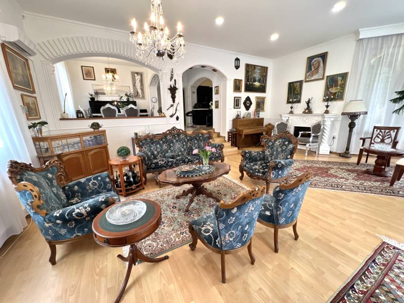 Diósd Kedvelt Központi, mégis CSENDES részén eladó ÖNÁLLÓ családi HÁZ nagy KERTTEL!Ősfás INTIM kertben szabadon pihenhetünk , vagy nagy méretű GRILLTERASZ miatt szolgálhat központjául családi/baráti összejöveteleknek.Jakuzzi is helyet kapott itt.Földszinten található:-előtér-2 szoba-fürdőszoba-mosókonyha-infraszauna-vendég WC-konyha-étkező-és egy NAGY méretű VILÁGOS nappali, ahol 3,3 méteres belmagasságának köszönhetően hatalmas térérzetet nyújt.Emeleten található:-4 szoba-közlekedő-teakonyha-fürdőszobaA felső szint bútorzatok alapján jelenleg irodaként funkcionál, de teljesen megtartották a szobák funkciójukat.Igény esetén akár 2 GENERÁCIÓS házként is működhet.Pinceszinten található:-garázs elektromos ajtóval-tároló helyiségekAz ingatlan fűtése gáz cirkó radiátoros hőleadókkal megoldott, illetve a nappaliban helyet kapott még egy elektromos kandalló is. Klimatizált, hűtő-fűtő klímákkal.A ház 2002-ben épült cserépfedéssel, jelenleg is kifogástalan állapotban van.Riasztóval felszerelt.A ház pinceszintjén található garázson kívül az udvaron helyet kapott még egy különálló garázs is.Ezeken felül még 2 autó beállására van lehetőség az udvaron.Környéken séta távolságra találhatóak boltok, szabadidőközpont, edzőterem és sok más.Közlekedés kiváló, 2 perc sétára buszmegálló, mellyel Kelenföldön lehetünk 20perc alatt.Pár perc alatt elérhető a M0/M6 is.További információkért keressen bizalommal!