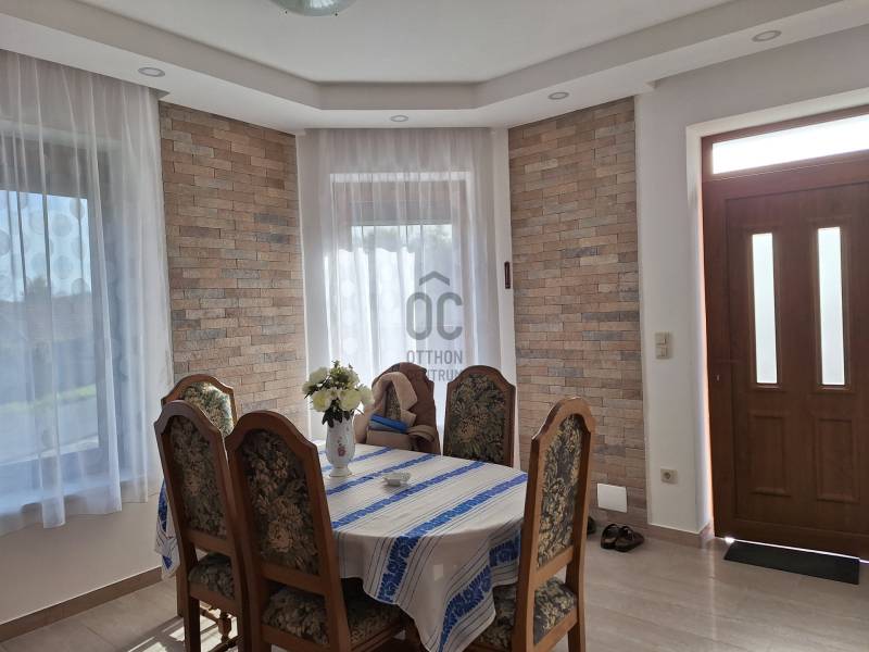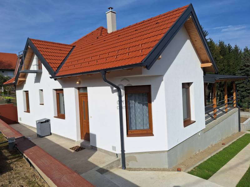 Üdvözlöm !E háznál a lényeg láthatatlan !Mert itt az az aljzatban, falakban, födémben, tetőben van!Csak érezhető Hiszen a fenntartási költségei csekélyek.Ez az a ház ami olyan otthona lehet Önnek és szeretteinek, ami kiszolgálja életüket. Felújítást nem igényel majd és csak ad, ad és ad.Meleget, biztonságot, otthonosság érzetet, csendet, kényelmet, ideális kertet, jó szomszédokat, mindezt élhető településen. Közel Hévízhez, Balatonhoz, Kehidakustány mellett.Ez a ház : igényes, új építésű családi otthon Zalacsány szívében.PRÉMIUM INGATLAN EGYEDI MEGBÍZÁSSAL ! Hívjon a részletekért.Emberléptékű, jól megépített, új építésű családi ház eladó Zalacsány kedvelt utcájában.Saját részre készült átgondolt tervek alapján, igazán minőségi anyagokból. A kényelmes, földszintes otthon rendezett környezetben található.106 m2 alapterületen helyet kapott : nappali cserépkályhával, 36 m2 fedett panorámás kellemes közvetlen terasz kapcsolattal, konyha- étkező, kamra, közlekedő dolgozóval, hálószoba, teljes fürdőszoba káddal és zuhanyzóval valamint gépészeti - mosó helyiség.Ezeken túl vendéglakosztály is készült. Ez előtérből, hálószobából és teljes fürdőszobából áll. Külön bejáratról is megközelíthető, szeparált.A ház energiatakarékosságot és fenntarthatóságot szem előtt tartva alacsony költséggel lakható.A 45 cm vastag tégla falazatra 8 cm grafit hőszigetelő rendszer került. Lábazat, aljzat, födém duplán szigetelt.Fűtése hőszivattyús rendszerrel, (padlófűtéssel ), hangulatos cserépkályhával ( 7 kW ) és sütő- főző csempe tűzhellyel is megoldott. Ez utóbbi is jelentős meleget ad .Meleg vizet ugyanez a rendszer vagy villany bojler adja időjáráshoz igazodva.Nyílászárók műanyagból készültek, 3 rétegű üvegezéssel, szúnyoghálóval és redőnnyel felszereltek.Zalacsány kedvelt település hiszen termálfürdők közelében fekszik. Hévíztől 9 km, Balatontól 14 km távolságra. Európa szerte híres Golf pályája a háztól 2 km re található.Komoly vételi szándék esetén várom elérhetőségeimen az ország legnagyobb és legelismertebb ingatlan közvetítő irodája nevében, tisztelettel.