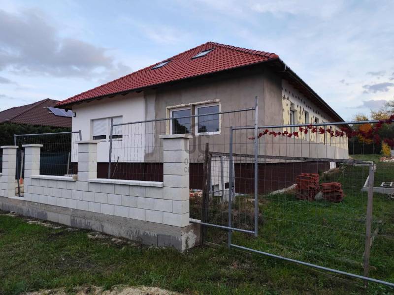 Gárdony csendes utcájában helyezkedik el a képeken látható 104 négyzetméter alapterülettel rendelkező DNY-i tájolású újépítésű ingatlan.Az ingatlan egy két lakást magában foglaló ikerház egyik lakóegysége.Az ingatlanhoz 810 négyzetméter kizárólagos használatú telekméret tartozik, amely nagyságának köszönhetően lehetőséget biztosít a kert szélesebb körű kihasználására.Rövid műszaki leírás: * Amerikai konyhás nappali étkezővel, 4 szoba, 1 fürdőszoba, külön wc + fedett terasz* Ház mérete: 104 nm hasznos alapterület + 12 nm-es fedett terasz* Tetőtérben 60 nm beépíthető* Telek mérete: 810 nm* DNY-i tájolású* A ház Porotherm 30-as tégla falazattal, 15 cm homlokzati hőszigeteléssel, 10 cm aljzatszigeteléssel készül* Padlóban lépésálló hőszigeteléssel, födémsíkban hő és hangszigetelő anyaggal, homlokzaton eps, lábazaton xps hőszigetelő táblával*Fűtés rendszer elektromos víz-levegő hőszivattyú, padlófűtés, és fan-coil fűtőtest* Műanyag 3 rétegű hőszigetelő üvegezésű nyílászárók, alumínium redőnyökkel* Bejárati ajtó: műanyag, több ponton záródó* Elektromos hálózat 3*16A ( H tarifa)* Tető: fa tetőszerkezet ,beton födémszerkezet, piros-barna cserép fedéssel, 25 cm padlásszigeteléssel* Burkolat: nappaliban-étkezőben, konyhában, közlekedő részen, fürdőszobában, mellékhelyiségben és a teraszon kerámia burkolat, szobákban laminált parketta* Homlokzat: nemes vakolat fehér színben * Az ingatlanrészhez tartozó kertrész drótkerítéssel elkerített, rendezett földfelszínű* Gépkocsi beálló térkővel burkolt.* Az utcafronti bejáratnál távirányítású kapubejáró készül személybejáró kapuval együtt* A konyhabútort a vételár tartalmazza. (1,5 millió forintig)* BB energetikai minősítésű besorolássalVárható átadási idő: 2024. szeptemberA ház csendes, családbarát környéken, a település kiemelten zöld részén található. Bevásárlási lehetőség autóval 5 percre van.Ha a vásárláshoz a jelenlegi ingatlana eladására van szükség, akkor abban is szívesen együttműködöm Önnel!Bővebb műszaki és egyéb információért várom jelentkezését!Amennyiben hitelre van szüksége, az Otthon Centrum az ország egyik legnagyobb és legmegbízhatóbb hitelközvetítőjeként, teljes körű és díjmentes hitel ügyintézéssel, áll ügyfelei rendelkezésére.Kérje személyre szabott ajánlatunkat!eladó, újépítésű, fejér megye, gárdony, családi ház, ikerház, tégla, 104 nm, 810 nm telek, nagycsaládos, 4 szoba, 5 szoba, amerikai konyhás, hőszivattyú, csok, lehetőség,