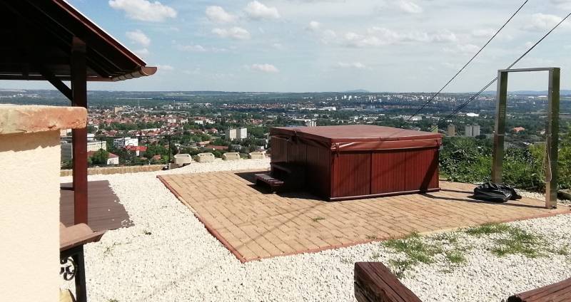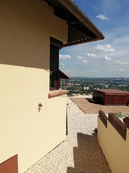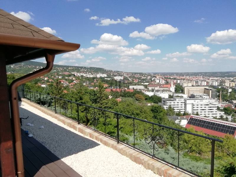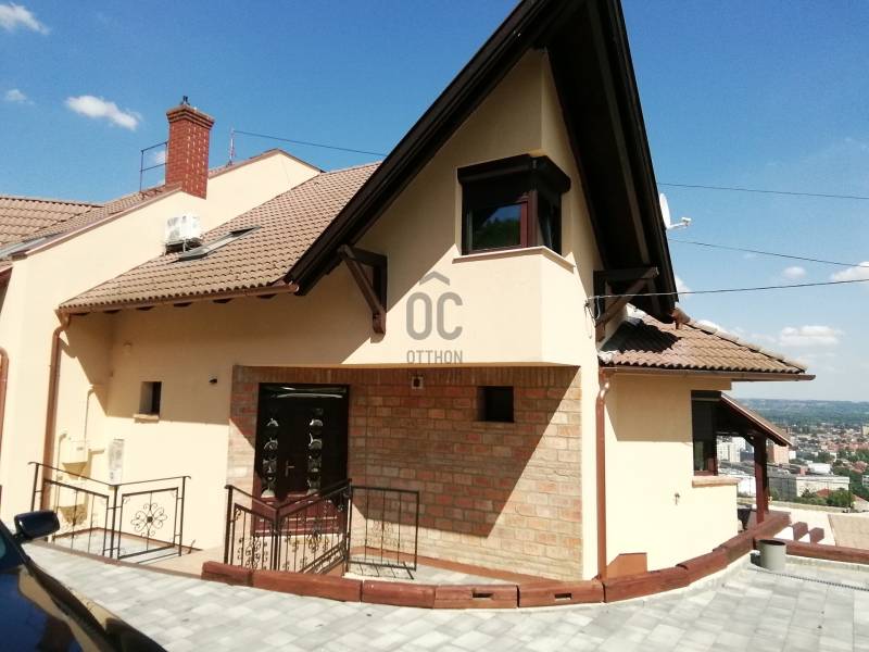 Kedves Érdeklődő! Ajánljuk figyelmébe ezt a kiváló állapotban lévő, luxus ikerházat, mely Baranya vármegye székhelyén, Pécsen, a Makár városrészben található. Az ingatlan tökéletes választás lehet azoknak, akik szeretnének elvonulni a város zajától, ugyanakkor szeretik, ha a belváros könnyen elérhető. Alapterülete 147 nm, 1400 nm-es telekkel. Az ingatlan négy szobás, és egy 50 nm-es gyönyörű panorámával rendelkező terasz tartozik hozzá jakuzzival. A korlátok kint is, bent is nagyon tetszetős kovácsoltvas technikával készültek.Az ingatlanban van egy 43 négyzetméteres, 2 férőhelyes járólapozott hörmann kapus garázs, melybe be van vezetve a hideg-meleg víz. Ebben az \"okosházban\" a fűtés, a mosógép is wifivel működtethető. 3 * 32 A áram áll rendelkezésre. Riasztó kamera rendszer védi a házat.Fenti szinten két szobában légkondicionáló, a lenti szinten a nagy egybefüggő térbe egy nagy teljesítményű légkondi biztosítja a kellemes hőmérsékletet. Az ingatlan állapota kiváló, de a tulajdonosa eladás előtt frissen kifesteti az ingatlant, virágokkal beülteti a támfalakat, friss festéssel látja el a 3 rétegű fa ablakokat, ezért ebbe az ingatlanba be lehet költözni felújítás nélkül.A fűtés gáz (cirko) rendszerű, (BOSCH kazánnal) de téli estékre az otthon melegét egy vízteres kandalló is szolgáltathatja, mely be van kötve a rendszerbe, A környék csendes és biztonságos, a közlekedési lehetőségek kiválóak, a belváros könnyen elérhető autóval és tömegközlekedéssel egyaránt. Ha ingatlancserével szeretné megoldani a lakásvásárlást, a tulajdonos nem zárkózik el, minden megoldás érdekli. Ha bármilyen kérdése van az ingatlannal kapcsolatban, hívjon! Ügyfeleink bizalommal fordulhatnak hozzánk, hiszen szakértői tapasztalattal és alapos ismeretekkel rendelkezünk az ingatlanpiac terén. Várjuk jelentkezését!