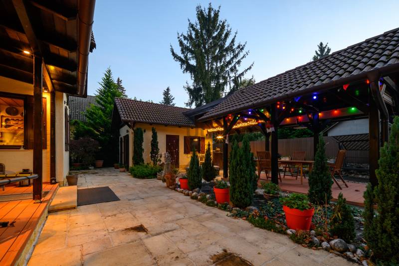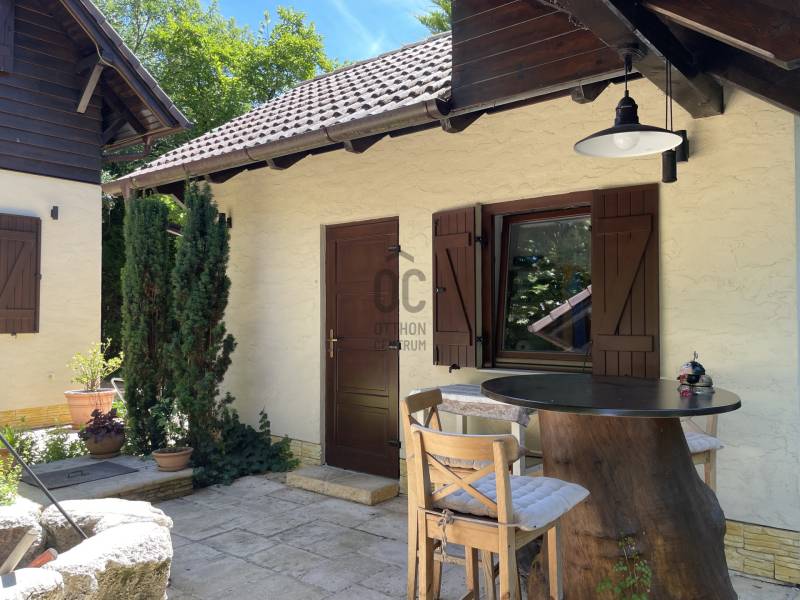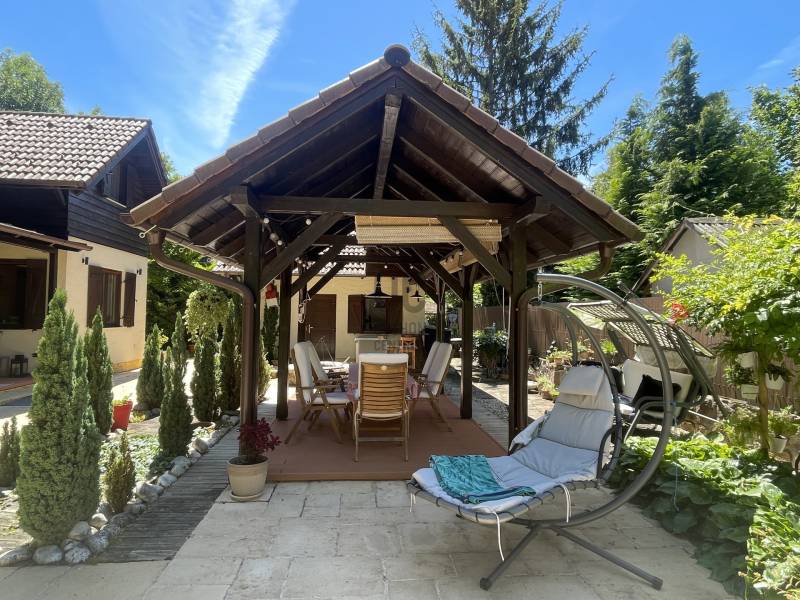 BALATONTONPARTTÓL 100 méterre egy CSODÁLATOS hangulatú, paradicsomi környezetben lévő ingatlant kínálunk eladásra!A vízközeli nyaraló és mesés kertjének látványa szemet gyönyörködtető és szívet melengető érzéssel tölti el csodálóját. A gondosan megtervezett harmonikus kialakítású anyaghasználat az arányok és a tökéletes pontossággal készült famunkáknak köszönhetően.A 793 nm-es telken elhelyezkedő minőségi anyagokból épített 162 nm alapterületű, 6 szobás, 2 fürdőszobás, konyha-étkező, hatalmas teraszok, tároló és egy dolgozó helyiséggel kialakított kiváló ingatlan. A növényekkel teli kerti oázisban egy kisház is helyet kapott ami további tárolási lehetőséget biztosít vagy külön álló lakóhelységként is funkcionálhat. A fákkal, cserjékkel és meseszép színpompás virágokkal körülölet kert középpontjában egy kerti pavilon is található, amely a nyári esték csodálatos helyszínéül szolgál egy családi vagy baráti vacsorák alkalmával, melyhez tartozik egy gonodosan kialakított kerti bográcsozó, sütögető, ahol az ízletes ételeket elkészíthetik.A víz közelsége az ősfákkal árnyékolt utcák a TÖKÉLETES elhelyezkedés és a házat körbevevő csendes és varázslatos milliő, biztonságot és nyugalmat nyújt az itt élők számára.A 100 méterre lévő szabad STRANDFÜRDŐN a mindennapi úszás vagy a családi fürdőzések és élményeken kívül a 400 méterre lévő VITORLÁSKIKÖTŐ is kényelmesen elérhető, így egy remek vitorlázást követően hamar a ház nyugalmában élvezhetik tovább a pihenést. A környék közlekedési szempontból is kiváló, Budapestről csupán 1,5 óra az ország legszebb autópályáján az M7-esen.A méretre készített bútorok és egyéb berendezési tárgyak az ingatlan részét képezik.Bármilyen kérdése van az ingatlannal kapcsolatban, kérem keressen bizalommal minket, hogy ez a remek környezet az Önöké lehessen!
