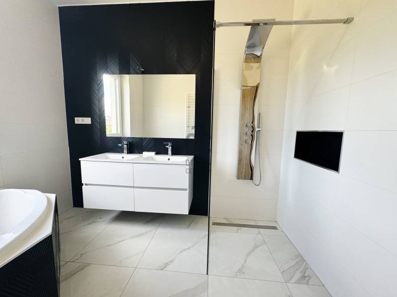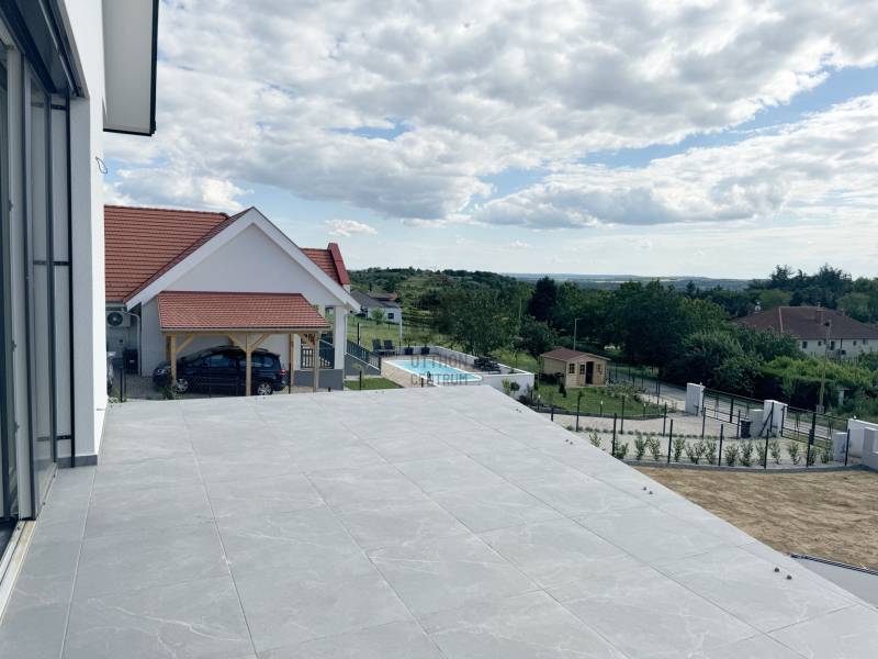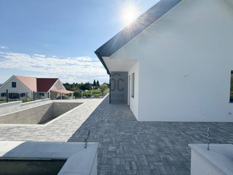 CSAK AZ OTTHON CENTRUM KIEMELT KÍNÁLATÁBAN !Figyelmükbe ajánlom a festői Cserszegtomaj legújabb ékkövét , egy modern , új építésű , eladó családi házat . Ez a páratlan ingatlan a letisztult dizájnt , modern élet stílust, kényelmet és a prémium anyaghasználatot ötvözi ,tökéletes otthont kínálva Ön és családja számára.AZ INGATLAN FŐBB JELLEMZŐI:- Ár euroban : 547.500€- 210 m2 lakófelület + dupla terasz , a hátsó terasz grillezésre alkalmas - 1519 m2 telek terület - Falazat : Porotherm 30 tégla + 15 cm Austrotherm hőszigetelést.- Tető : 25 cm vastag tetőszigetelés, Terra antracit cserépfedés.- Tetőtér: Beépíthető, ideális belmagassággal, víz-villany-csatorna felvezetve- Fődém: Monolit vasbeton fődém - Elektromosság:3x20 A , elérhető H-áram tarifával- Nyílászárók: 3 rétegű műanyag szerkezetű nyílászárók elektromos redőnyökkel, nappaliban zsaluziával felszerelt- Fűtés és Hűtés: Padlófűtés és mennyezet hűtés, 16 kW-os Fisher hőszivattyús rendszer, mely a melegvíz ellátását is biztosítja.- Hőszabályozás:Helyiségek külön és központilag termosztáttal vezérelhetők.- Teraszon üveg korlát- cpl beltéri ajtók- Konyhabútor benne van az árban-Wellis szaniterek- Medence: 5x3 méteres, fűtés nélküli medence.- A ház okosítása lehetséges- Belső kaputelefon betelepítve.- Hörmann elektromos garázskapu- Kerítés: elől antracit lemez kapu és 2 szárnyú nyíló elektromos kapu ,oldalt antracit drótfonat-Parkosított kertKiváló ingatlan azok számára, akik minden igényt kielégítő, esztétikus környezetben szeretnék megtapasztalni a balatoni életstílust ,közel a Balatonhoz és Hévízhez , mind otthonként , mind nyaralóként használva.AMENNYIBEN FELKELTETTEM ÉRDEKLŐDÉSÉT , FORDULJON HOZZÁM BIZALOMMAL , VÁROM HÍVÁSÁT AZ ORSZÁG LEGNAGYOBB ÉS LEGELISMERTEBB INGATLANKÖZVETÍTŐ HÁLÓZATA NEVÉBEN!