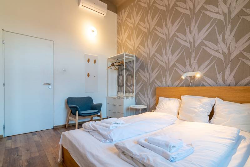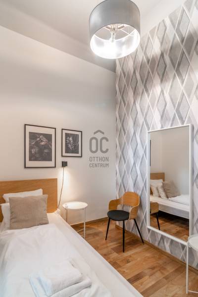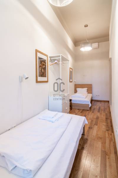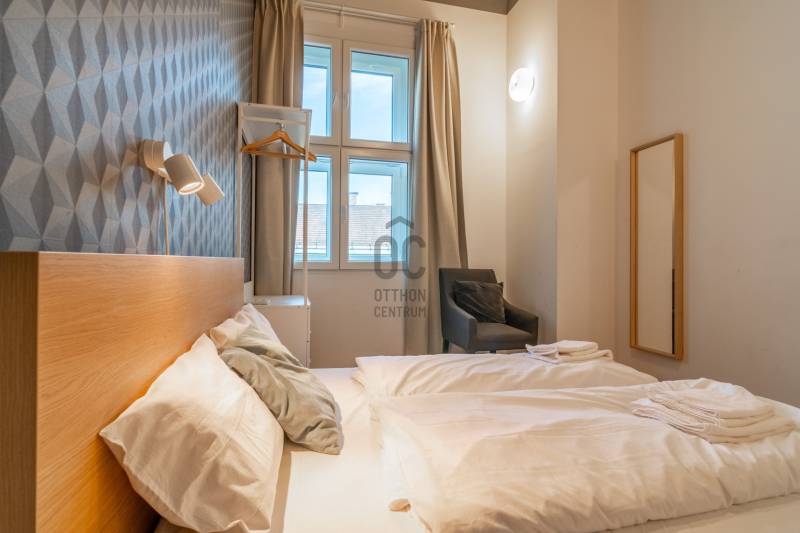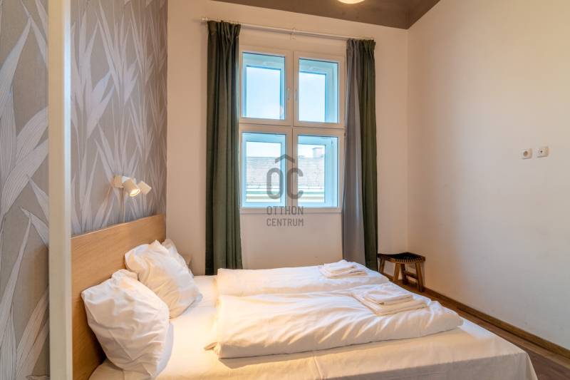 Budapest szívében a GOZSDU udvar SZOMSZÉDSÁGÁBAN (VI. kerület Belső Terézváros) kínálok eladásra egy belső építész által megálmodott és magas minőségben kivitelezett, 75 nm-es, 4 teljes szobás, 2 külön bejáratú fürdőszobás, tipikusan MAGÁNSZÁLLÁSHELY (AIRBNB, BOOKING) céljából kialakított, TELJESKÖRŰEN és MAGAS MINŐSÉGBEN FELÚJÍTOTT, utcai nézetű lakást.Engedéllyel és HRSZ-re szóló társasházi közgyűlési hozzájáruló határozattal rendelkezik - 7 főre, 4 vendégszoba (2 db 12 m2-es és 1 db 13,1 m2-es utcai 1 db 8 m2-es udvari szobával).Az ingatlan jelenleg is működő Airbnb profillal és foglalásokkal rendelkezik, mely igény esetén továbbvihető, azonnal működtethető. Átlag HAVI ÁRBEVÉTELE bruttó 2.500 euró. 2 db külön bejáratú fürdőszobájában egyedi épített zuhanyt, WC-t és mosdót alakítottak ki.Minden helyiség külön klimatizált - lefolyóba bekötött cseppvíz elvezetéssel.Konyhája gépesített, beépített hűtőszekrénnyel, mosogatógéppel, főzőlappal és mikrohullámú sütővel, valamint 8 főre teljes felszereltséggel.Utcai ablakai teljesen hangszigeteltek - dupla sorosak, külső oldalon 3 rétegű-, belső oldalon 2 rétegű hőszigetelt műanyag nyílászárók.Elektromos hálózatát 3x25 Amperre bővítették.Bármerre is indul a városban, a környéken mindig megtalálja a legjobb lehetőséget a tömegközlekedésre, hiszen a 4-6-os villamos, a 70-es, 78-as, 74-es trolibuszok mellett az 1-es 2-es és 3-as metróvonal, valamint számos nappali és éjszakai buszjárat rövid sétatávolságon belül elérhető, továbbá a legnépszerűbb üzletek, éttermek, szolgáltatások, bevásárlóközpontok, illetve kulturális és szórakozási lehetőségek is megtalálhatók a közelben, ezért is vonzó célpont a fiatalok, diákok és turisták számára, akár rövid-, akár hosszútávú kiadásban gondolkozik, kiemelkedően magas hozamot jelentenek tulajdonosaik számára.Bővebb információért várom hívását!Egyedi igényekre szabott lakáshitelekkel állunk rendelkezésére.Bankfüggetlen hitelcentrumunk az országban elérhető összes bank és hitelintézet ajánlatát versenyezteti az Ön számára díjmentesen.Munkatársaink nagy szakmai tapasztalattal várják Önt az előre egyeztetett időpontban akár a normál munkaidő után is.
