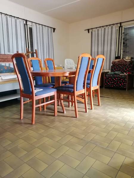 Paks csendes részén, zöld környezetben kínálok megvételre egy jelenleg 45m2-es ingatlant, 1480m2-es telken.A felépítmény könnyűszerkezetes technológiával készült, jelen pillanatban egy lakószobával rendelkezik, de könnyedén, kis ráfordítással bővíthető, átalakítható új tulajdonosa kedvére. Az épület alatt betonozott, száraz pince található, valamint az udvarban egy tároló is helyet kapott. A vízellátást fúrt kút biztosítja, amely ivóvíz minőségü, valamint a kertben megkönnyíti a locsolást. A gondozott kert gyümölcsfákkal, szőlővel tarkított, valamint helyet kapott egy medence illetve egy kerti zuhany is. A szomszédok csendesek, az udvarból páratlan a kilátás. Gazdálkodásra, állat tartásra, életvitelszerü tartózkodásra tökéletes, a tömegközlekedés 10 percre található.