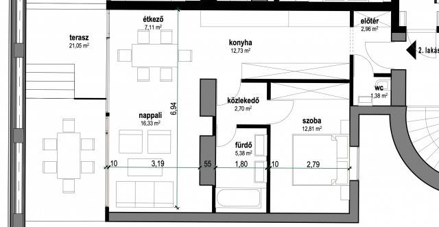 Legyen a világörökség részese! Abban a szerencsés lehetőségben részesülhet, hogy az Andrássy úton páratlan tulajdonságokkal vásárolhat ingatlant! Ami kiemeli ezen lakást a sugárút lakásai közül is, hogy igazán jól használható terasszal rendelkezik ez a két szobás, összkomfortos, napfényes ingatlan. A pazar lakás 20m2-es terasszal rendelkezik . A terasz kb. 6x3 m-es dimenziókkal rendelkezik és csupán egy díszes balusztrád választja el az utcafronttól mely felett kellemes kilátás nyílik az Andrássyra. A lakás teljes belmagassággal rendelkezik, fűtést & hűtést a lakáshoz tartozó NIBE hőszivattyú biztosítja padló és mennyezet hűtő-fűtő rendszerrel a gazdaságos működtetést hővisszanyerős szellőztetés segíti. Opcionálisan automata árnyékolás technikával is felszerelik az ingatlant. MOST még az Ön elképzelése alapján valósulhat meg a befejezés. A parkolás közelben megoldható.