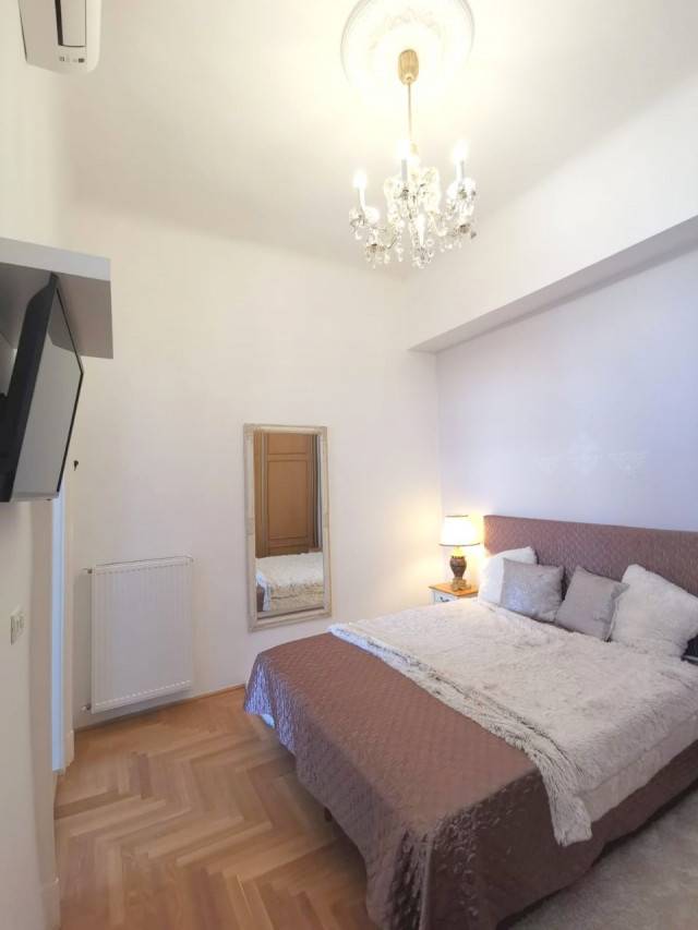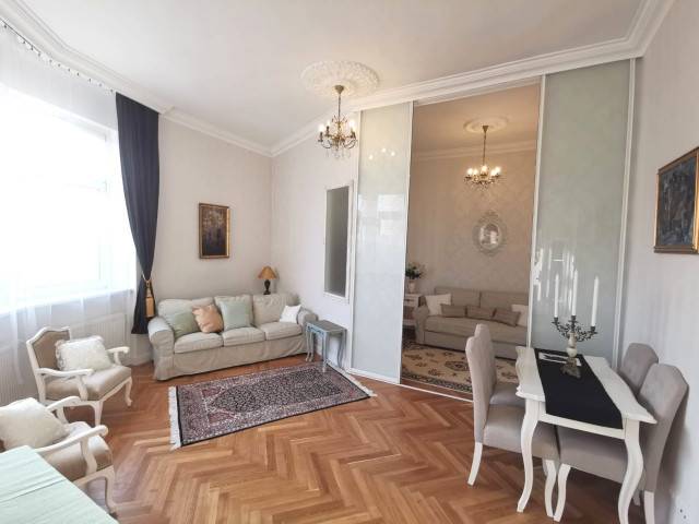 V.kerület VÁCI utcában zárt lépcsőházból nyíló 65 nm, 1 nappali + 2 hálószobás (külön nyílóak) teljes körűen, frissen felújított, luxus minőségű anyagokkal, csendes lakás, gyönyörű liftes társasház V. emeletén eladó. Egyedi fűtésű (gáz cirkó), légkondicionált. Bútorozottan, teljes felszereléssel. Belmagasság 3,4 m.Közös költség: 17.000 Ft (korlátlan hideg víz használattal)( bútor+ felszerelés kötelezően)Egyetemek 3-5 percre: ELTE Jog, Corvinus , ELTE BTK Közlekedés:Metró M3 és M4 (Ferenciek tere, Fővám tér) 2 perc
