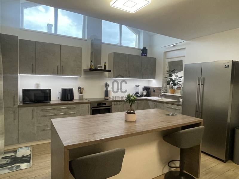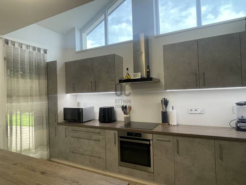 BALATONSZENTGYÖRGY központjában egy modern családi házat kínálunk eladásra!A teljeskörűen újjáépített családi házban kényelmes terek kerültek kialakításra. A földszinten 2 hálószoba, egylégterű konyha-étkező, nappali valamint fürdő-wc, tároló, háztartási helyiség találhatók. Az emeletet az új tulajdonos a saját ízlésének megfelelően tudja kialakítani, melyhez a közművek és a fűtés előkészítése kiépítésre került.A belső nagy tereken kívül egy hatalmas fedett terasz is tartozik a házhoz, amely kényelmes és központi helye a családi életnek, bármilyen alkalomról legyen szó vagy egyszerűen csak a hétköznapok során.Az ingatlanhoz tartozik egy 25 nm-es lakó/dolgozószoba, amiből egy különálló lakórész vagy apartman is kialakítható. Egy fedett 2 állásos nyitott garázs is tartozik az ingatlanhoz. A ház körüli kert jól kialakított, egyenes fekvésű, fákkal, cserjékkel beültetve és kiépített öntöző rendszer is található a kertben, amely kútról is üzemeltethető.Bármilyen kérdése lenne az ingatlannal kapcsolatban, kérem keressen minket bizalommal!