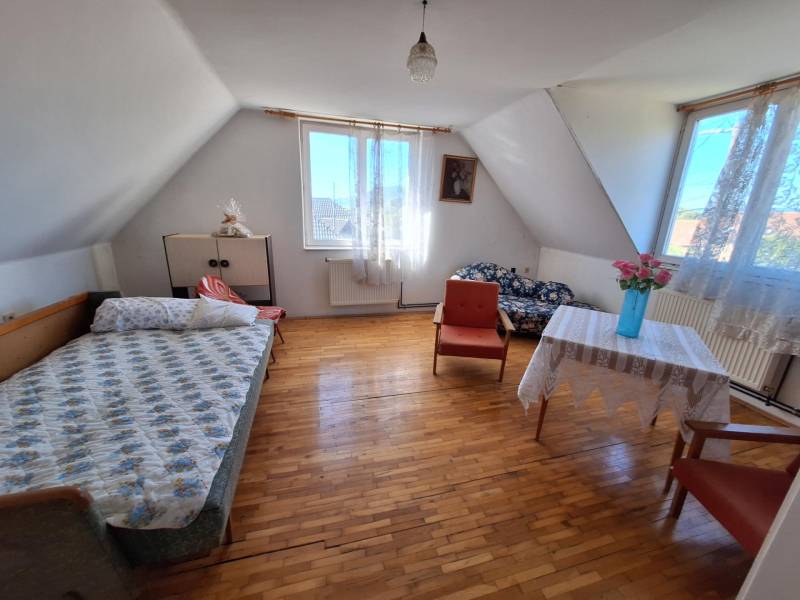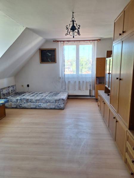 Tapolca déli részén, nagyszerű otthonná alakítható családi ház eladó!Csendes környezetben, de mégis közel a központhoz eladó vált egy tágas, nagy családi ház. Az ingatlan könnyen megközelíthető, iskola, óvoda, bevásárlási lehetőség is a közelben, akár gyalogosan is könnyen elérhetőek.A 471 nm-es belterületi, körbekerített telken álló ház két szinten összesen 150 nm. Ehhez került még hozzáépítésre egy fedett garázs, valamint tároló, ahol a kazánház is található.A ház alsó szintjén teraszon át lépünk be a házba, ahol egy nagy előszoba található, melyből 3 nagy tágas szoba nyílik. A konyha étkezővel és spájzzal, valamint a fürdőszoba is a földszint része. A teraszról pedig még egy külső tároló is elérhető.Az emeleten 3 gyönyörű, világos, nagy ablakos szoba és egy fürdőszoba, valamint 2 Wc is található.A déli szobák ablakából szép, a Szent-György hegyre néző panoráma tárul elénk.Az ingatlan melegét radiátorok adják, a fával való fűtésről egy vegyes tüzelésű kazán gondoskodik.Amennyiben kérdése merülne fel az ingatlannal kapcsolatban vagy szeretné azt megtekinteni, kérem keressen amegadott elérhetőségek egyikén!