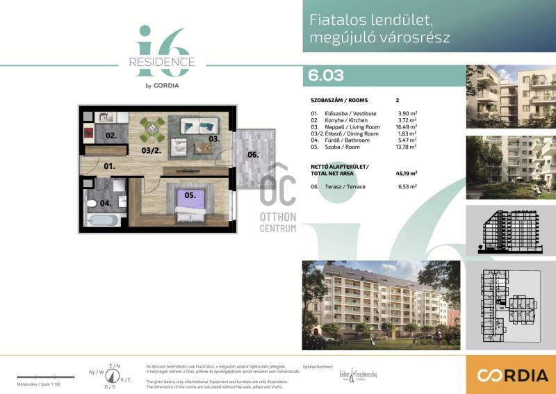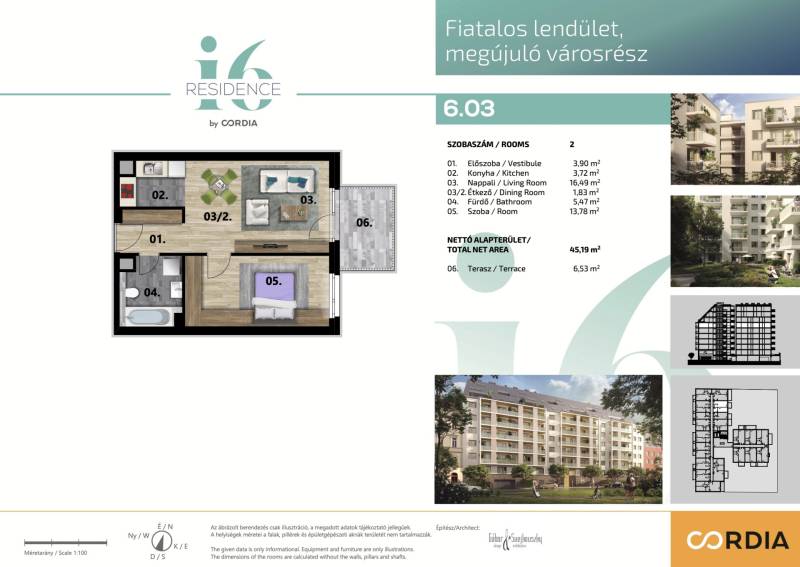 VIII. i6 Residence-ben, 6. emeleti, 44 nm alapterületű + 7,5 nm terasszal rendelkező, K-i fekvésű bútorozott lakás eladó. Tehermentes, rövid időn belül költözhető.- A+ energetikai besorolás, mennyezeti hűtés-fűtési6 RESIDENCE BY CORDIAA CORDIA a közép – és kelet-európai régió egyik legnagyobb lakóingatlan-fejlesztő és befektető vállalatcsoportja. A társasház a 21. század technológiai megoldásaival felszerelt.A 2023-ban átadott I6 épületében lépcsőházanként 2 lift áll rendelkezésre. A belső udvarban gondozott kert szépíti az életteret, a lépcsőház takarítása mindennapos. A társasházban távfelügyelettel ellátott kamerarendszer gondoskodik a lakók biztonságáról.Az i6 Residence a VIII. kerület folyamatosan fejlődő, megújuló részén található, mindössze 8 perc sétára a népszerű és ikonikus Corvin Sétánytól. A fiatalos, pezsgő környéken felül az azonnal költözhető ingatlanok kiváló ár-érték aránya és jelentős értéknövekedési potenciálja miatt ideális választás akár az első lakásukat kereső fiatalok számára, akár hosszútávú befektetési céllal. A lakások könnyen bérbe adhatók, hiszen egyetemek és irodák vannak a társasház közvetlen közelében.Várom hívását, kérem, keressen bizalommal.