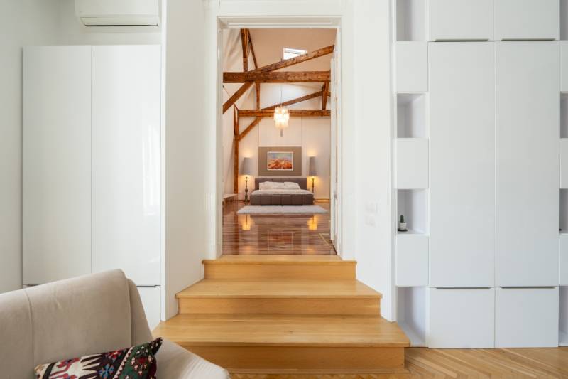 Eladó egyedi luxuslakás Újlipótváros szívében tetőterasszal!Ha valami igazán különlegesre vágyik, ne keressen tovább! A XIII. kerületben, a Hegedűs Gyula utcában kínálom megvételre ezt az egyedi megoldásokkal kialakított, 161 nm-es, 5. emeleti luxuslakást.A 4 szobás ingatlan különlegessége a saját belső személyi lift, amely közvetlenül a privát infraszaunához és a Budai panorámás tetőteraszhoz vezet. A lakás főbb jellemzői:A társasház kiváló állapotú mindössze 50 lakás van benne. Exkluzív és biztonságos környezet: Az 5. emeleten mindössze két lakás található, a lift pedig csak kulccsal használható, így a privát szféra teljesen biztosított. A lakás távfelügyeletre kötött riasztó rendszerrel rendelkezik.Modern technológia és kényelem: 2024-ben új Vaillant kazán és minden helyiségben hűtő-fűtő inverteres klíma került beszerelésre. Radiátorok és fan coil van.A tető új szigetelést kapott illetve műfüvesítve lett.Prémium minőségű felújítás 2015-ben. Az összes villanyvezeték, vízvezeték, a fal hanggátló belső szigetelést kapott, új műanyag nyílászárókat, szúnyogháló és redőny.A legmodernebb anyagok és egyedi design jellemzi a lakást, ahol a magasfényű modern bútorok és vintage stílus tökéletes harmóniát alkotnak.Kiváló hő- és hangszigetelés: A lakás télen kellemesen meleg, nyáron pedig hűvös marad, így energiahatékony és komfortos.Teljesen berendezett: Az ár tartalmazza az összes egyedi gyártású és gondosan válogatott bútort és teljes gépesített konyhát.Elrendezés:Tágas előszoba, amely az étkezőbe vezet, ahol egy látványos kiszolgáló pult található.Nyitott nappali, amelyet egy elegáns oszlop választ el az étkezőtől. Óriási terek és a nagy belmagasság egyedi hangulatú!Teljesen gépesített szinte új állapotú rejtett konyha az étkező mellett.Gardróbhelyiségből nyíló fürdőszoba, amely zuhanyzóval, WC-vel és bidével felszerelt.Mosókonyha és kazánház.Különálló szoba, amely ideális lehet dolgozó szobának vagy vendég szobának.Az ingatlan éke amitől garantáltan el áll a lélegzete....a szint eltolással kialakított, 5 méteres belmagasságú hálószoba aminek a tetején ablakok vannak így akár ágyból is láthatjuk a csillagos eget vagy ébredhetünk arra,hogy a hasunkra süt a nap!Elektromos redőnnyel ellátott tetőablakok biztosítják a kényelmet.Egy exkluzív kétszemélyes pezsgőfürdős kád és épített üveg zuhanyzó is helyet kapott egy légtérben. Illetve a márvány mosdó ahol a vizcsap nyitására felkapcsol a lámpa! Külön zárt helyiségben van egy wc és bide is.Ebből a különleges hangulatú hálószobából belső személyi lift visz fel az infraszaunához. Innen néhány lépcsővel elérhető a fából kialakított tetőterasz csodás panorámával. Tűzijáték páratlan élményt nyújt innen! Extrák:-Központi porszívó-Egyedi világítási rendszerek-Étkezőben zöldfal-Teljesen rejtett vezetékek és csövek- RiasztórendszerElhelyezkedés és közlekedés:A lakás Újlipótváros egyik legkedveltebb részén található, ahol kiváló infrastrukturális adottságok és remek közlekedési lehetőségek várják:M3 metró (Lehel tér vagy Nyugati pályaudvar megálló) pár perc sétára,4-6-os villamos a körúton gyors elérést biztosít a város más részeihez,Számos busz- és trolijárat is könnyen elérhető.Látnivalók és kikapcsolódási lehetőségek a közelben:Szent István park – tökéletes hely egy kis pihenésre, sétára vagy sportolásra.Margitsziget – Budapest egyik legszebb zöld szigete csupán egy rövid sétára.Westend Bevásárlóközpont – számos üzlet, étterem és mozi a közelben.Duna-parti sétány – romantikus esti sétákhoz vagy futáshoz ideális.Befektetésnek is kiváló garantáltam kiadható hosszú vagy akár rövid távra is magas áron!Ez a különleges luxuslakás kizárólag az én kínálatomban érhető el!Megtekintés rugalmasan, akár azonnal!Ha felkeltette az érdeklődését, hívjon bizalommal, ha nem veszem fel, visszahívom!I.V.