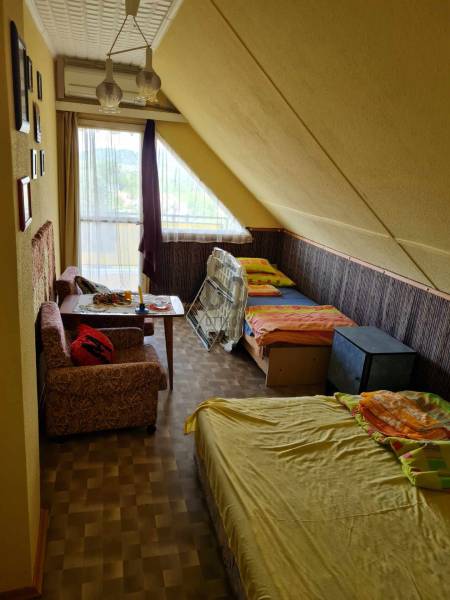 Badacsonytördemic - Badacsonylábdihegy csendes, zöldövezeti, átmenő forgalomtól mentes részén vált eladóvá ez a 3 szintes, Balatonra és szigligeti várra panorámás nyaraló.A házhoz egy 1.345 négyzetméteres, szőlővel telepített, gondozott udvar tartozik. Összközműves, gázcsonk telken belül található.A kivett hétvégi ház besorolású ingatlan mindhárom szintje külön-külön bejáraton keresztül közelíthető meg, így alkalmas lehet több család egyidejű ott tartózkodására, nyaralónak, turisztikai befektetésnek, de állandó lakhatásra, családi otthonnak is remek választás.Az épület az 1980-as évek elején épült, földszinti/ szuterén része vöröskőből, felső két szintje téglából. A ház födémszerkezete vasbeton gerenda. A házhoz két külön tároló helyiség is tartozik.Fűtésrendszer az ingatlanban nem került kiépítésre, viszont 2 kéménykiállás is beépítésre került. A felső szint klímával hűthető.Az áramellátást szintenként külön villanyóra látja el, az alsó szinten 1X 20 Amper, a felső szint áramellátását 3 fázisú - 3x20 Amper éjszakai és nappali áram fedi le.Az épület szintenkénti megosztása:a földszint 64.3 négyzetméter, itt egy előtér, konyha, étkező, 2 hálószoba, terasz, egy fürdőszoba és Wc tesz található.a földszinttel megegyező nagyságú tetőtérben előtér, konyha, étkező, 2 hálószoba, terasz, fürdőszoba és wc található.a szuterén/ pince rész 55.5 négyzetméter, ez présházból, pincéből és szerszámtárolóból áll jelenleg.A házat télen - nyáron aszfaltos úton könnyedén meg lehet közelíteni autóval. A helyi strand és kisbolt gyalogosan is egy könnyed sétával elérhető.Ajánlom az ingatlant mindazok figyelmébe, akik nem ijednek meg egy felújítási folyamattól, hiszen ebből a masszív épületből és a hozzá tartozó szőlővel borított területből mesés balaton-parti nyaralóház varázsolható!Amennyiben kérdése merülne fel az ingatlannal kapcsolatban vagy szeretné azt megtekinteni, kérem keressen megadott elérhetőségeim egyikén!