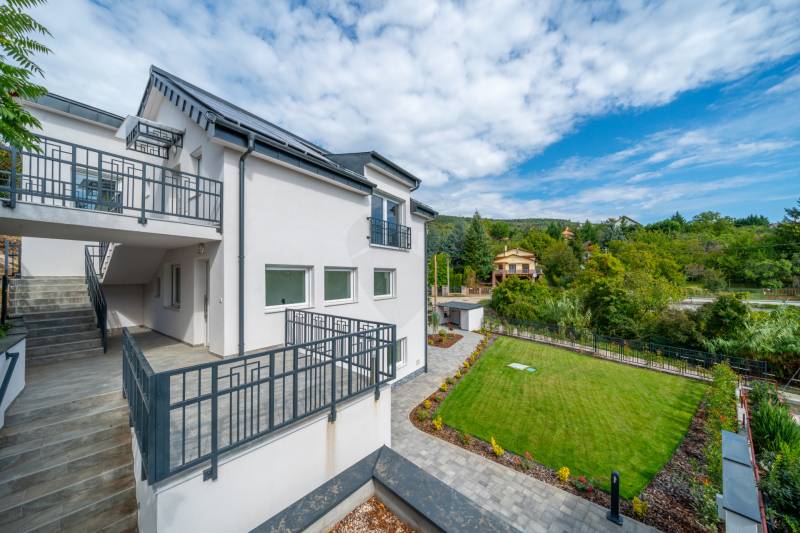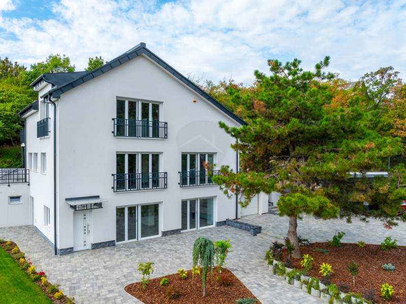 EXKLUZÍV ÖRÖKPANORÁMÁS LUXUSVILLA BUDAÖRS LEGKIEMELKEDŐBB LOKÁCIÓJÁN!!!!!!!!!!!! Fedezze fel ezt a páratlan adottságokkal rendelkező, háromszintes luxusvillát Budaörs egyik legelőkelőbb részén, a Zengő utcában! Ez a 2023–2024-ben újjáépített, 300 m²-es, hét szobás rezidencia a modern építészet és az időtlen elegancia tökéletes harmóniáját nyújtja. A 1178 m²-es, gondosan parkosított kerttel körülvett ingatlan nem csupán egy otthon, hanem egy életstílus, ahol a kényelem, a kifinomultság és a természet közelsége egyesül.Az ingatlan különlegességei:Három teljesen önálló, exkluzív lakótér – mindhárom szint saját konyhával és fürdőszobával rendelkezik, így ideális többgenerációs családoknak vagy befektetési célra.Lenyűgöző örökpanoráma – a hatalmas ablakokon keresztül páratlan kilátás nyílik a budai hegyekre és a városra, amely minden napot különlegessé varázsol.Magas minőségű anyaghasználat – minden szinten exkluzív gránit padlóburkolat található, amely nemcsak esztétikus, hanem rendkívül tartós és könnyen karbantartható.Modern és fenntartható fűtés-hűtés rendszer – energiatakarékos hőszivattyú gondoskodik a téli és nyári komfortérzetről, padlófűtéssel és fan-coil rendszerekkel kombinálva.Intelligens energiafelhasználás – a napelemek napi 7 kWh teljesítménnyel biztosítják a háztartási gépek energiaellátását, miközben az automata öntözőrendszer esővízgyűjtő ciszternákhoz csatlakozik, fenntartható víz felhasználást biztosítva.Prémium kategóriás konyhák – minden szinten teljesen gépesített, beépített konyhabútorokkal felszerelt, exkluzív kivitelezésű főzőterek várják a gasztronómia szerelmeseit.Luxus fürdőszobák – gránitburkolattal, exkluzív szaniterekkel és elegáns kialakítással.Magas szintű biztonság – emeletenként külön riasztórendszer, videós kaputelefon és igényesen kialakított kovácsoltvas utcai kerítés garantálja a zavartalan nyugalmat.Exkluzív pincehelyiség – a földszinti lakáshoz tartozó boltíves, téglaburkolatú borospince tökéletes helyszíne lehet baráti összejöveteleknek vagy borkóstolóknak.A gondosan tervezett kert és kültér:Igényesen parkosított, gyönyörű gyepszőnyeggel, térkőburkolattal és dísznövényekkel kialakított privát kert.Hangulatos napelemes díszkivilágítás, amely különleges atmoszférát teremt az esti órákban.Modern automata öntözőrendszer, amely biztosítja a növényzet frissességét és gondozottságát egész évben.Lokáció és megközelíthetőség:Páratlan elhelyezkedés – csendes, zöldövezeti környezetben, mégis kiváló közlekedési kapcsolatokkal.Autóval: mindössze 19 perc a Széll Kálmán tértől, 5 perc az M7-es autópályától és 3 perc a balatoni főútvonaltól.Tömegközlekedéssel is könnyedén elérhető, így Budapest belvárosa gyorsan és kényelmesen megközelíthető.Kiváló parkolási lehetőségek:1 db házba épített garázs,3 db fedett kocsibeálló.Ez a tehermentes, prémium kategóriás ingatlan nem csupán egy otthon, hanem egy életérzés – egy olyan hely, ahol a természet közelsége, a korszerű technológia és az elegáns dizájn tökéletes egyensúlyban találkozik. Ne hagyja ki ezt az egyedülálló lehetőséget! Lépjen kapcsolatba velünk, és fedezze fel személyesen ezt a varázslatos, exkluzív rezidenciát!