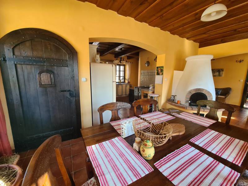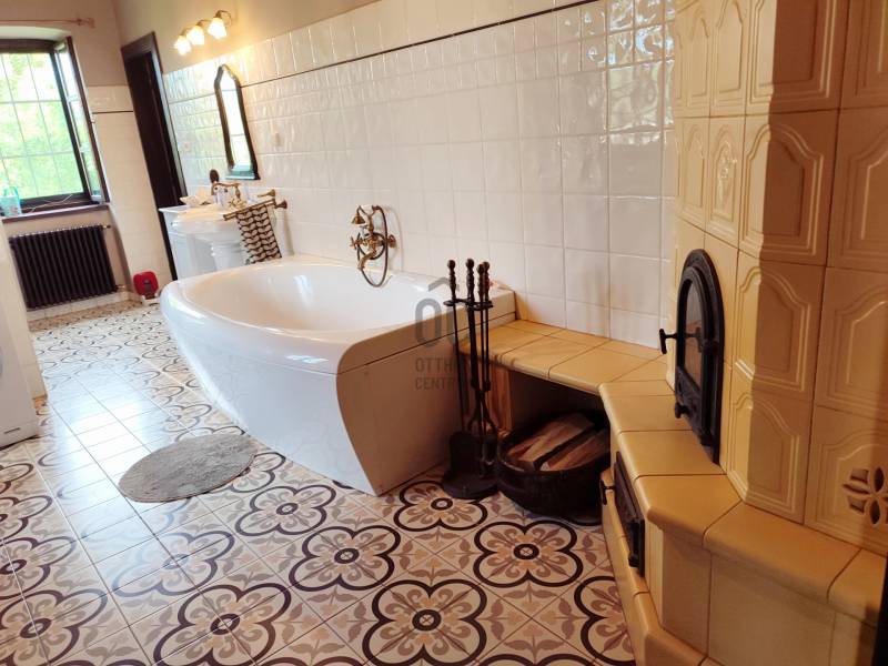 A lenyűgöző Őrségi Nemzeti Park területén, Őriszentpéteren, valódi kuriózumként kínàlom megvételre, ezt a mesebeli, màr jól működő, önfenntartásra, önellátásra tökéletes mòdon kialakított, vendégszobákkal ellàtott, gyönyörű csalàdi birtokot.A 8371nm-es telken kettő teljes mértékben, különleges, egyedi és nagyon hangulatos stílusban felújított ház helyezkedik el, ebből a főépület 184,75 nm (földszint 100,52 nm tetőtér 84,23 nm-es, a melléképület 143,2 nm (földszint103, 86 nm, tetőtér 39,16nm).Az igényesen megtervezett és kivitelezett főépület alsò szintjén talàlhatò egy hatalmas fürdőszoba + wc, egy puffer kazán tàrolò, egy közlekedő, egy tágas hàlòszoba és egy amerikai konyhàval egybenyitott étkező.A tetőtérben egy előtér, két nagy szoba és két zuhanyzò +wc helyezkedik el. A melléképület felső részén egy nagyméretű, öt férőhelyes vendégszoba+fürdőszoba kapott helyet, alsò részét képezi a garázs, egy nyári konyha, amit az esetleges felső szintet bérlő vendégek is használhatnak, egy nagy fatàrolò, egy közlekedő. A melléképület hàtsò részéről nyílik egy három szobàs tyúkòl \"Pipi suite\", egy nappali, egy hálòszoba és egy tòjòfészkekkel teli szoba kényezteti szárnyas lakòit. Itt lelhető még egy külön tàrolò, ahol egy villanybojler kapott helyet, ami a felső szint melegvizét szolgáltatja.A főépület 1907- ben épült, az 50 cm-es tömött tégla falak új szigetelést kaptak és természetes anyaggal kezeltek.Mindkét hàz új cserép héjazattal burkolt, a melléképület új betonkoszorút is kapott, itt a tetőszerkezet teljes felújítàson esett àt.Az eredeti , gyönyörü, fenyőgerendákat jò àllapotuk végett megtartották, ez alà helyezték a szintén nagyon szép fa álmenyezetet. Ezek közé, minőségi, befúvòs Termoflock szigetelést raktak, ami biztos védelmet nyújt rovarok és esetleges tűz ellen.A két épület közötti rész a bejáratig térkövezett. A csatorna be van kötve.A szép fa nyílàszàròk, dupla hőszigetelt ablakok, eredeti réz zàrakkal, redőnyös szúnyoghàlòkkal felszereltek.A stílusos olasz konyhát gránit pult fedi, ennek tartozéka Electrolux màrkàjú mosogatògép és indukciòs sütő-főzőlap.Az ingatlanban több fűtési lehetőség van, ehhez kettő bélelt kémény áll a hàz szolgálatàra.Az egyik a nappaliban elhelyezett csodàlatos búboskemencét köti össze, amin sütni, főzni lehet, a màsik kémény egy elektromos és fa füzelésű cirkò, patkòs rendszerű sparhelt kiàllòja, ami a konyhát, a szobàt és az egész felső szintet fűti fel.A falakon design radiàtorok ékeskednek.A felfűtött lakàs melege egy puffer tartály segítségével napokig fenntarthatò, ami nagyon előnyös a hideg napokon.Ezen kívül a hàlò és a fürdőszoba melegét egy gyönyörű cserépkályha is biztosíthatja.A lakòtér alatt nagy méretű pince helyezkedik el.A telekre érve, a hàzak mögött egy kis tò találhatò, mely körül a szàrnyasok vidáman kapirgálnak. A birtokon szinte minden megterem, ami szem szàjnak ingere, a gyümölcsszezon, ami az eperrel kezdődik és a majd közel 30 gyümölcsfa közül a naspolyával zàrul be. A vegyszermentes bio-konyhakertben \"Ròkakert\" is szinte minden zöldség megtalàlhatò, ami egy családnak szükséges.A telek két szélét 100 éves, elegáns pàlinka fàk ékesítik, ez a sòzòkörte, amiből a zamatos pàlinka készül. Hàtsò részében, a legelő és egy 5*os jòszàg hotel a \"Kocsma\" talàlhatò, benne egy mosolyt csikarò \" MekkDonald\'s- al, ez az állatkàknak fenntartott istállò, ahol jelenleg Pàlinka a kecske, Whisky, Tequila, Vodka és màs hasonlò névre hallgatò négylàbúak élnek, ők látják el a lakókat tejjel, vajjal, sajttal és húsfélékkel...A hàz melletti kút biztosítja a háztartás egész éves vizellátását, mosàs, öntözés, àllatok itatàsa, stb..., így az éves víz szàmla nullàsra jön ki, de egy mozdulattal városi vízellátásra is átállítható a rendszer.Az éves villanyszàmla 165000Ft volt, így az ingatlan rezsi költsége nagyon alacsony.A főépület melletti részre egy vendéghàz lett megàlmodva, ennek tervezete màr elkészült és engedélyeztetve van.A telken lévő tüzelni valò fa kb 5-6 évre elegendő, jövőjéről szerződés esetén a két tulajdonos dönt.Kíváló lehetőség lehet önfenntartásra vágyó, most alakuló közösségeknek, akár nagycsaládosoknak, azoknak, akik szeretnének egy gyönyörű helyen, a város zajától elvonulva élni.