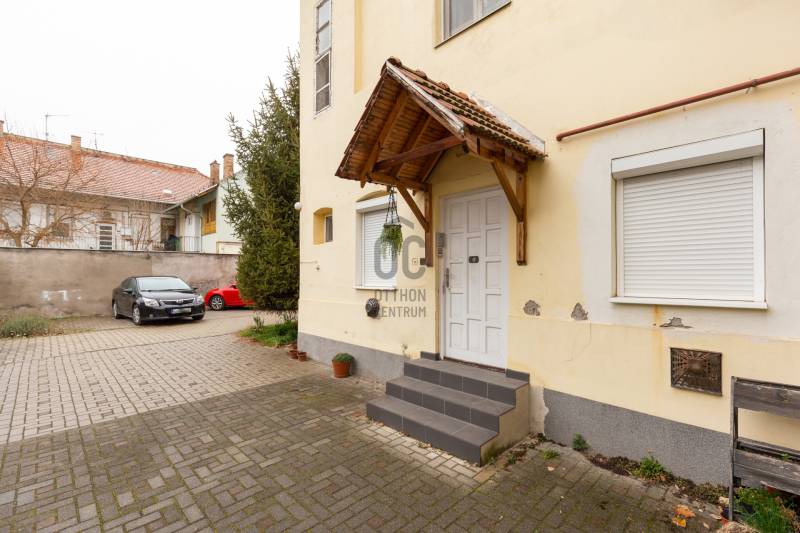Szeged, Jósika utcai társasház földszintjén, 80 nm-es, 3 szoba, konyha-étkező, előtér, WC-kézmosó helyiségekből álló lakóingatlan eladó.A lakásnak a társasház belső udvara felől van a bejárata. Az ingatlant tulajdonosai eddig irodaként használták, ezért kialakításra került a bejáratnál közvetlenül egy mozgásérzékelő és riasztórendszer. A társasházba kapukóddal, valamint kulccsal juthatunk be, zártrendszerű. A lakás falai festettek, illetve beltéri fa falburkolat borítja, az aljzat burkolat laminált padló, a konyhában és az előtérben járólapot találunk. A konyhába egyedi tervezésű bútor került. A lakás nyílászárói műanyag és fa, redőnnyel felszereltek. A fűtést gázkonvektor biztosítja, a meleg vizet villanybojler állítja elő. A lakás rezsije alacsony, a társasházban a lakók nem fizetnek közös költséget. Az általam kínált ingatlan tágas helyiségekből áll, kisebb ráfordítással hangulatos lakás alakítható ki belőle. Amennyiben befektetésben gondolkodunk, 3 különnyíló szoba, valamint egy tusoló kialakításával kiadhatóvá tehetjük. Lehetőség vantovábbá arra is, hogy az 1-es számú lakással összenyissuk, csupán egy ajtót kellene megnyitni, és 130 nm-hez juthatunk. A lakáshoz tartozik, 2 udvari gépkocsi beálló. Amennyiben igény van rá, egy 17 nm-es garázs közvetlen utcai bejárattal is megvásárolható. Az egyetem és a belváros 5 percre, a tömegközlekedés, troli, villamos 2 percre van a háztól.Ajánlom ezt a lakást mindazoknak, akiknek fontos a belváros és a felsőoktatási intézmények közelsége, mégis nyugodt helyen szeretnének lakni!