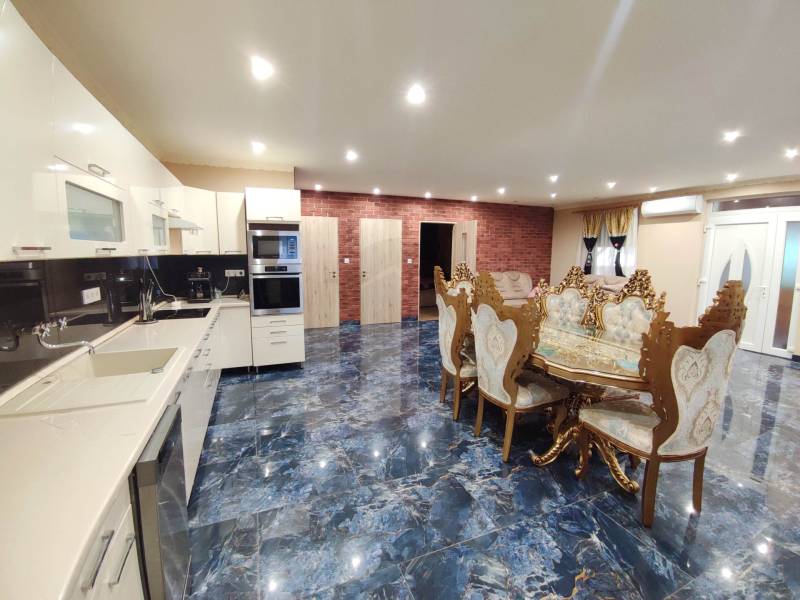 Zsámbokon eladásra kínálok egy 977 nm-es telken elhelyezkedő 130 nm-es alapterületű, nettó 122 nm-es lakótérrel rendelkező családi házat.Ez az egyszintes, összkomfortos családi ház Zsámbokon a Deák Ferenc utcában, csendes környéken található. Az ingatlan 2022-ben épült sáv alapra, Porotherm 30 tégla falazattal, 10 cm vastag EPS 80 homlokzati szigeteléssel, 30 cm vastag tetőszigeteléssel, betoncseréppel fedett. Thermo üvegezésű műanyag nyílászáró szúnyoghálóval és redőnnyel ellátott.A házban lévő hatalmas terek lehetőséget adnak nagyobb családnak is a kényelmes életstílushoz.A bejárat előtt egy fedett 5 nm-es belépő található. Belépve az ingatlanba az otthon melegét adó impozáns 55 nm-es nappali-konyha-étkező tárul elénk. Gépesitett konyhabútor (mely közel 2 millió forint volt) a vételár részét képezi. Konyha mellett egy kamra kapott helyet. 3 külön nyíló nagy méretű hálószoba, melyből kettő szoba 15 nm-es és a harmadik 14 nm-es. 10 nm-es fürdőszoba és külön mellékhelyiség.Fűtésről kondenzációs kazán gondoskodik, mely radiátorokon és padlófűtésen keresztül adja a meleget. Szobákban hűtő-fűtő klíma is felszerelésre került, így a nyári melegben is gondoskodik a hűtésről. Az ingatlan mellett egy gyönyörű 92 nm-es fedett gépkocsibeálló került kiépítésre, ahol a család több autója is parkolhat, biztonságát elektromos kétszárnyú fa kapu őrzi. Ingatlan mögött egy 9 nm-es tároló és egy 36 nm-es fedett terasz is található, mely családi, baráti összejövetelekre kiválóan alkalmas. Az ingatlanhoz tartozó nagy telek még rengeteg lehetőséget rejt magába.Az ingatlant rugalmasan lehet megtekinteni, hétvégén is!Intor Ingatlan – Otthont biztonságban!Irodánk az értékesítés első lépésétől az utolsóig az Ön rendelkezésére áll. Amennyiben valamelyik ingatlanunkat jelenlegi ingatlana értékesítése után kívánja megvásárolni, vagy ha egy megbízható irodával szeretne együttműködni, amely teljes körű ügyintézést biztosít megfizethető áron, forduljon hozzánk bizalommal!