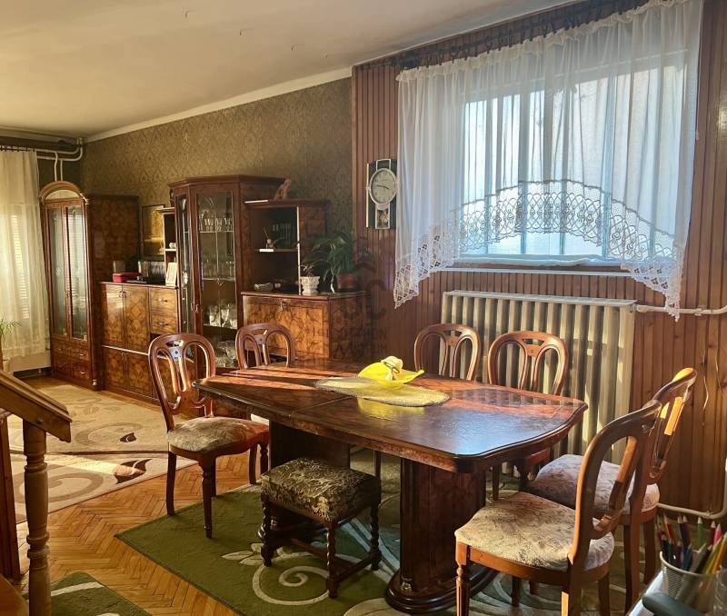 Eladó 4 lakásos, 3 szintes sorház szélső lakása, Nyíregyháza Hímes városrészben.Ez az ingatlan nem csupán a tágas életteret kínálja, hanem egy olyan környezetet is, amely ideális otthonná varázsolja mind a családok, mind a befektetők számára. A ház öt szobával és három fürdőszobával rendelkezik, így bőséges helyet biztosít a kényelmes élethez. A 350 négyzetméteres telek lehetőséget ad a szabadidő eltöltésére, legyen szó kerti partik szervezéséről vagy gyermekek szabadban való játékáról. A terasz mérete 16 négyzetméter, amely tökéletes helyszín a reggeli kávé elfogyasztására vagy a naplemente megcsodálására.A környék csendes és biztonságos, ideális választás családok számára. A közlekedési lehetőségek kiválóak, hiszen a város központja könnyen megközelíthető autóval és tömegközlekedéssel egyaránt. A közelben található iskolák, óvodák és bevásárlóhelyek mind hozzájárulnak a mindennapi élet kényelméhez. Az ingatlan elhelyezkedése lehetővé teszi, hogy a város nyújtotta lehetőségeket maximálisan kihasználja, miközben a természet közelségét is élvezheti. Az ingatlanról:-1981-ben épült téglából, precíz tervek alapján-Cserép héjazat-Fűtése gáz kazánnal megoldott-Műanyag nyílászárók-5 szoba-2 állásos garázs (külön helyrajzi számon szerepel)-pihenőkert, és utcafronti virágos előkertVárom hívását, a hét minden napján!