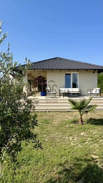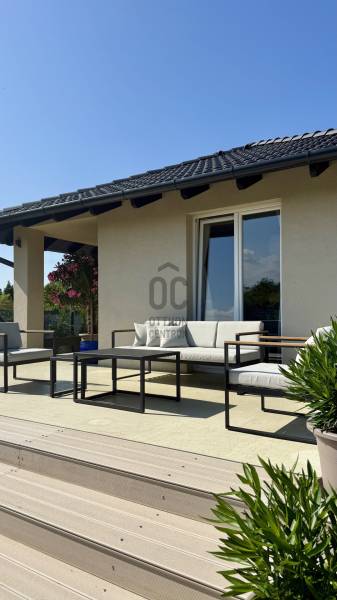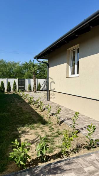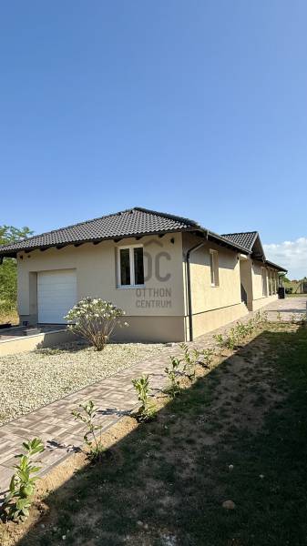 A környéken sok az új építésű ingatlan, azonban sokan nem is sejtik, mekkora költség ezeket a basic házakat igazi otthonná varázsolni! Arról nem is beszélve, hogy mennyi idő és energia.A ház tulajdonosai saját részre építtették és rendezték be ezt a gyönyörű otthont.Tehát az új házaknál szokásos elkerülhetetlen, de bosszantó apróságokat már megoldották . (kezdeti repedések, 1-2 illesztéssel mindig gond van, szegélylécek, stb...) Megálmodói ügyesen vegyítették a minimal stílus letisztultságát a mediterrán színek által nyújtott otthonossággal, a szokásos szürke-fehér kombináció mellőzésével! Nem tervezték az eladását, de adódott egy vissza nem térő lehetőség. Így most Ön élvezheti tovább a ház nagy tereit, pazar kényelmét és a sok egyedi, okos megoldás nyújtotta komfortot.Lényegesebb tulajdonságai a teljesség igénye nélkül:-Kondenzációs kazán, padlófűtés hő leadással a teljes alapterületen-Fűtött garázs -Premium konyha+nappali, ahonnan a teraszra is kiléphetünk-3x16A elektromos hálózat-Riasztórendszer, távfelügyelettel-Akár teljes berendezéssel, edzőtermi gépekkel együtt is megvásárolható, megállapodás szerint-A szülői hálóban szabadon álló kád is található, illetve közvetlen teraszkapcsolattal rendelkezik-A ház duplakomfortos-A nappaliban és minden hálóban található klíma-A hagyományos konnektorokon kívül több helyiségben USB és USB-C konnektorok-Műanyag nyílászárók-Hatalmas fedett terasz, mely körbefut a ház hátsó harmadánSorolhatnám még az előnyös tulajdonságait, de inkább jöjjön el és győződjön meg róla személyesen, hogy ez a ház Önnek és családjának is tökéletes otthon lesz! Irodánk pénzügyi partnere díjmentesen segít Önnek milliókat spórolni, amennyiben banki finanszírozást vesz igénybe.Ez az ingatlan a \"Hűség csomag\" megbízási portfólióhoz tartozik. Részletek az Otthon Centrum weboldalán.