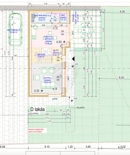 *** Újépítésű igényes sorházi lakás saját kertrésszel eladó! ***Hatvan központjában a Dobó téren kínálunk eladásra 3 db nettó 80 m2-es sorházi lakást, saját kertrésszel. A tetőtérben kerülnek kialakításra a hálószobák. A kellemes nyári-téli hőérzetről HŐSZIVATTYÚS rendszer fog gondoskodni. Az épület modern technológiával épül, ezáltal kedvező ENERGIAHATÉKONYSÁGÚ lesz. Minden ingatlanhoz saját térkövezett kocsibeálló tartozik és egy ideális méretű TERASZ kerül kialakításra. A beruházó/kivitelező megbízható, Hatvan környékén több referenciával is rendelkezik.A lakás (utcafronti) - 49+31 m2, nappali + konyha, 2 hálószoba, fürdő, wc, háztartási helyiségekből áll. - Irányár: 73.900.000 FtB lakás (2. ingatlan) - 49+31 m2, nappali + konyha, 2 hálószoba, fürdő, wc, háztartási helyiségekből áll. - (Eladva)C lakás (3. ingatlan)- 55 m2, nappali + konyha, 2 hálószoba, fürdő, wc, háztartási helyiségekből áll. - (Eladva)D lakás (utolsó). - 49+31 m2, nappali + konyha, 2 hálószoba, fürdő, wc, háztartási helyiségekből áll. - (Eladva)Közintézmények, iskolák, üzletek, kórház karnyújtásnyira találhatóak, illetve a korszerű kivitelezése miatt hosszútávon értékálló befektetés lesz. Várható befejezés 2026. Január - Február!További információért hívjon bizalommal!