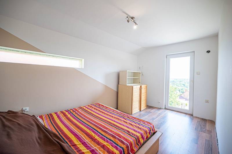 Szekszárdon Hárslevelű dűlőben családi ház eladó! A présházból bővített és kialakított ház alapterülete 57 m2. A bővítés 2007-ben történt, 30 cm vastag porotherm téglából. Belül két szintes az épület. Alsó szinten konyha-étkező-nappali és fürdőszoba-wc, a pince fölé épített emeleten 3 hálószoba és egy befejezésre váró fürdőszoba található. Mindkét szinthez tartozik terasz és a terasz előtt egy 4 normál méterű autó számára is megfelelő zúzott köves parkoló áll rendelkezésre. 1411 m2 területű a körbekerített telek. Az épület mögött teraszos kialakítású kert található!A felújítások közül kiemelném: - 10 cm vastag homlokzati hőszigetelést kapott a ház- felújított villany és vízhálózat- hűtő-fűtő klíma került beépítésre- ablakok műanyag szerkezetűre lettek cserélve- belső ajtók jó minőségű fa ajtók 13,5 Aranykorona értékű a föld, kifüggesztést igényel! A ház végig betonozott úton megközelíthető, a Bor utcáról nyíló szurdikon keresztül akár két irányból is. Közművek közül villany és víz adott, a szennyvíz zárt szennyvízgyűjtőbe kerül. A fűtés kályhával vagy hűtő-fűtő klímával megoldható. Ha addig is megtekintenéd, keress bizalommal!