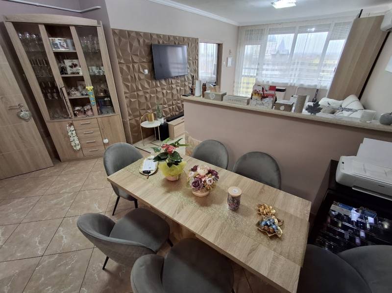 Eladóvá vált egy 2021 - ben felújított társasházi lakás!Az ingatlan főbb jellemzői:- hasznos alapterület: 76 nm- víz és szennyvíz vezetékek cserélve- villanyvezetékek a konyhában cserélve- új műanyag nyílászárók redőnnyel, szúnyoghálóval ellátva- új, gépesített konyhabútor- beépített szekrények- új beltéri ajtók- új bejárati ajtó- hűtő - fűtő klíma- riasztó- új konvektorok- a lakás külső falai 10 cm-es hungarocellel szigetelve- a konyhában és a fürdőszobában energiatakarékos villanybojler- erkélyen új burkolat- 6. emelet- lift vanA hirdetésben szereplő információk a megbízótól kapott adatok alapján készültek, pontosságukért felelősséget nem vállalunk!Amennyiben hitelre van szüksége, irodánkban teljes körű bankfüggetlen hitel ügyintézéssel állunk rendelkezésére.