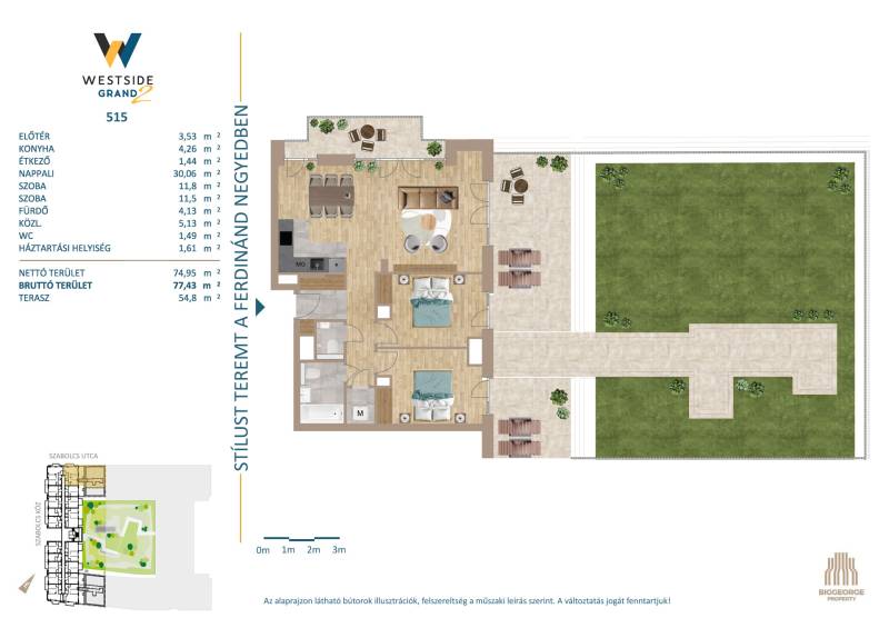 Projekt bemutatásaA projektrőlA Westside Grand I-II. a Biggeorge Property Westside fejlesztés sorozatának - a Westside Residence és a Westside Gardent követően - legújabb tagja.LokációBudapest egyik leggyorsabban fejlődő kerületének központi területén, a XIII. kerületben, a Városligettől és a megújuló Nyugati pályaudvartól sétatávolságra épül. A Nyugati pályaudvar környéke az elkövetkezendő években szinte teljesen megújul, a XIII. kerületben elhelyezkedő Szabolcs utcában, illetve közvetlen környezetében számos új építésű ingatlan épült, melyek jelentős értéknövekedést kínálnak a környéken ingatlant vásárlóknak. A több ütemben megvalósuló lakóingatlanfejlesztések hatalmas zöld parkot ölelnek körül, így a lakók akár az erkélyen ülve is élvezhetik a csendet, nyugalmat és zöld környezetet egy központi, belvárosi környezetben is.