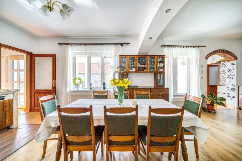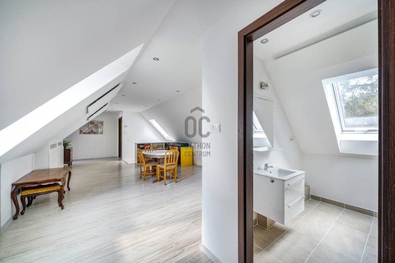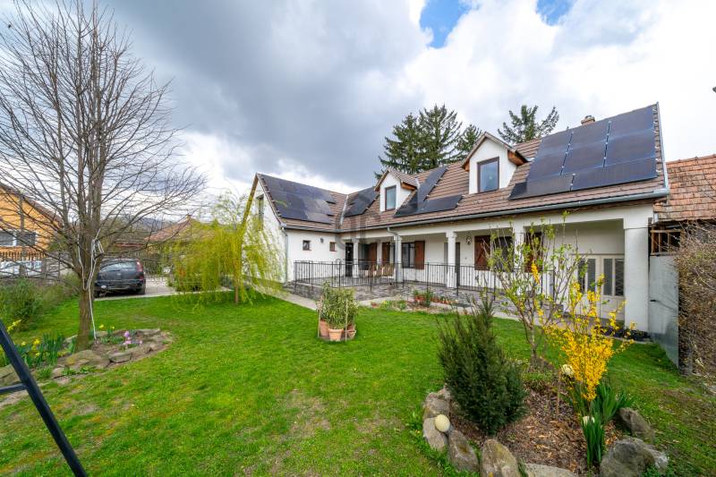 *** SZENTENDREI SZIGETEN FELÚJÍTOTT, TÁGAS, NAPFÉNYES TEREKKEL RENDELKEZŐ OTTHON, NAPELEM RENDSZERREL, ALACSONY FENNTARTÁSI KÖLTSÉGEKKEL ***Tahitótfaluban, az Arany János utcában, 205 nm hasznos alapterülettel rendelkező, nappali + 7 szobás, kiváló állapotú, napelem rendszerrel felszerelt családi ház eladó, önálló, összközműves telken.A ház alapja az 1960-as években épült, klasszikus, tornácos parasztház, mely első körben 2012-ben került bővítésre, korszerűsítésre, majd 2022-ben egy nettó 80 nm-es tetőtérrel is bővült, ahol további helyiségek kerültek kialakításra.A ház korszerűsítése, bővítése során, új, műanyag nyílászárók kerültek beépítésre, szigetelést is kapott a ház, fűtéséről pedig a mennyezetre felszerelt infra panelek gondoskodnak, melyhez az áramot a házon elhelyezett 9 kW-os napelem rendszer biztosítja. Alternatív fűtési lehetőség is rendelkezésre áll a házban egy vegyes tüzelésű kazán formájában, mely radiátoros hőleadókon keresztül gondoskodik a melegről.A ház korszerűsítése, továbbá a tetőtér beépítése ugyanúgy a legkorszerűbb, magas minőségű anyagok használatával történt.A 125 nm-es földszinten a nappali-konyha-étkező helyiség mellett további 4 szoba, kamra, valamint 2 fürdőszoba és egy külön mosdó kapott helyet. A teraszról két bejáraton keresztül is lehetőség van bejutni a házba.A 80 nm hasznos alapterületű tetőtérbe a nappaliból kialakított lépcsőn lehet feljutni, ami egy tágas közösségi térbe vezet, innen nyílik további 3 szoba, valamint egy zuhanyzós, ablakos fürdőszoba és egy külön mosdó.Igény esetén lehetőség van külső lépcső megépítésére is, ezzel akár két generációssá lehet alakítani a házat, hiszen a tágas, tetőtéri közösségi térben kényelmesen kialakítható egy amerikai konyhás nappali.A házhoz tartozik egy 25 nm-es beton pince, egy nyári konyha, egy zárt fatároló, és egy fedett tér, ami műhelynek vagy tárolásra is tökéletesen alkalmas, azonban ez igény esetén el is bontható.Az 1105 nm-es telken 2 gépkocsi számára térkövezett beálló biztosít parkolási lehetőséget, melyet az automata kovácsoltvas kapun lehet megközelíteni.A kiskapu is automatizált, kamerás kaputelefonnal felszerelt.A telken fúrt kút is rendelkezésre áll. Gáz jelenleg nincs a házban, de telken belül van.A ház fenntartási költségei különösen kedvezőek, hiszen a házon elhelyezett napelem rendszer 9 kW-os teljesítménye teljes egészében fedezni tudja az áram fogyasztást, beleértve a fűtést is.A településen remek az ellátottság, minden megtalálható, ami a mindennapi élethez szükséges. A háztól gyalogos távolságra elérhető Óvoda, Iskola, Posta, Gyógyszertár, bevásárlási lehetőségek. Ezenkívül a Tildy Zoltán hídon átkelve Kormányablak, Tesco, Rossmann és további üzletek, szolgáltatók állnak a helyiek rendelkezésére.Olyan új tulajdonost keresünk aki értékeli a ház különleges, egyedi hangulatát, a tágas tereket, de fontos számára a kedvező rezsiköltség és mindezt élvezni kívánja családjával ebben a komfortos házban a festői Dunakanyarban.További információkért és megtekintéssel kapcsolatban várom hívását!