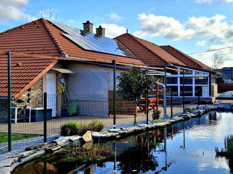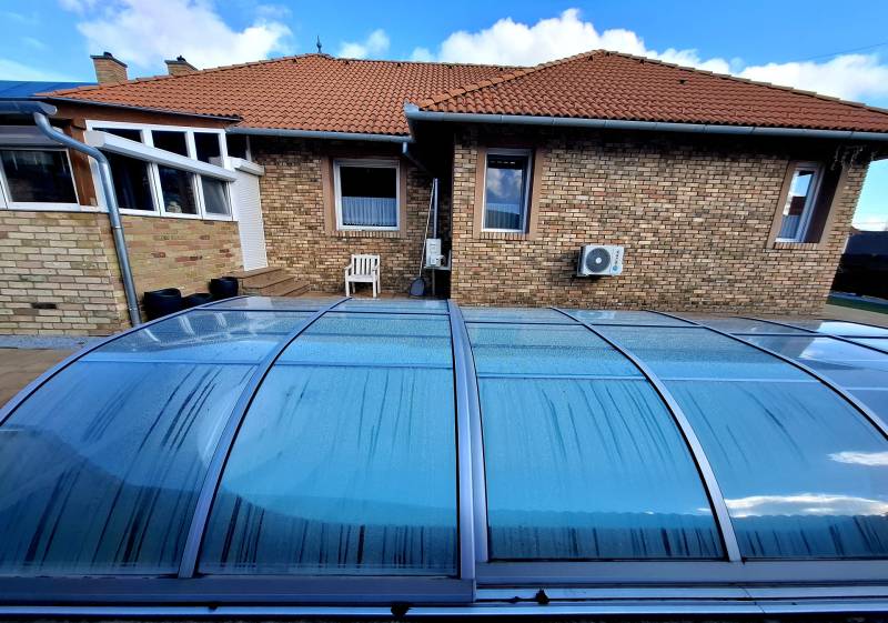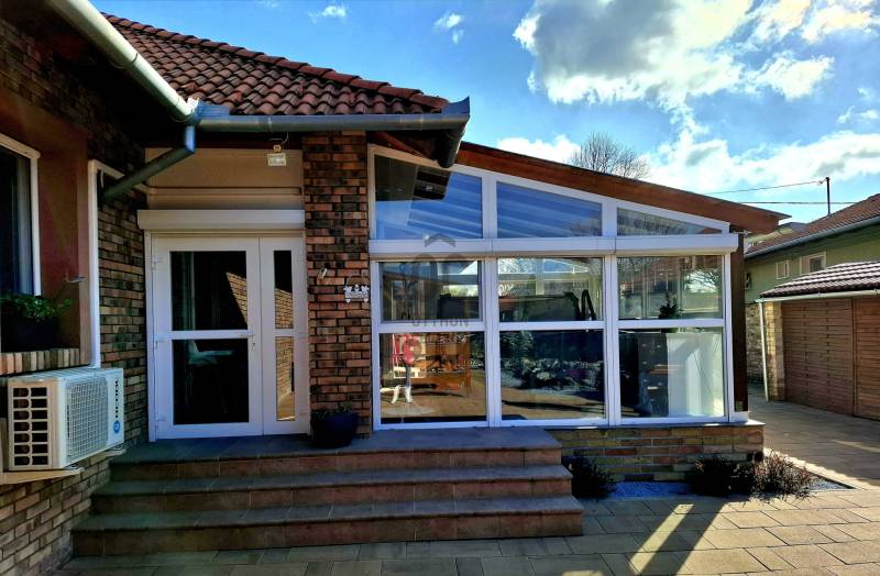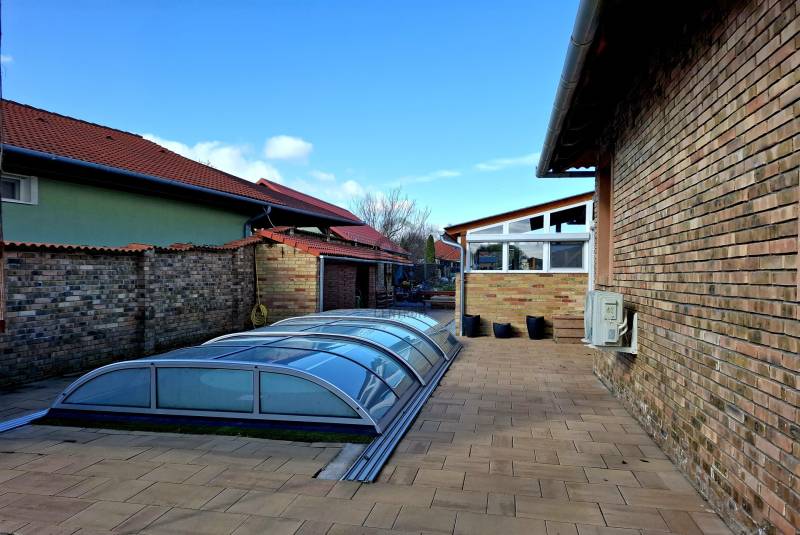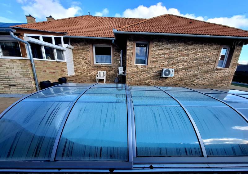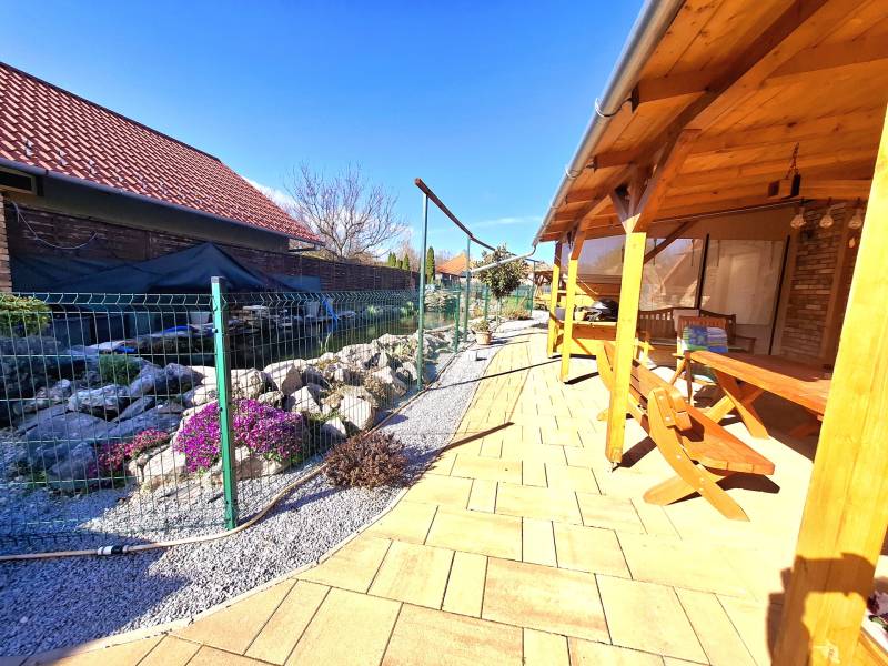 Regisztrációs szám: H499625Baranya Vármegye, egyik közkedvelt településén, Pellérden, 1400 m2-es sík területen kínálom megvételre ezt a FULL EXTRÁS, minden igényt kielégítő, egy szintes LUXUS családi házat.Pellérd település, Pécs délnyugati szomszédságában, a város központjától körülbelül 7 kilométerre, helyezkedik el.Közösségi közlekedéssel való megközelíthetősége a térség más településeihez mérten igen jónak mondható!A községben még számos, eredeti állapotában megőrzött tornácos parasztház áll, de az általam kínált ingatlan, egy teljesen más stílust és minőséget képvisel!Rendben van, hogy pörög az ingatlan piac, de biztos lehet benne, hogy ehhez fogható házat, keresve, sem talál!!!A hirdetett irányárból ezt az ingatlant, ezzel a kialakítással és felszereltséggel, ismerve a telek és építőanyag árakat, ilyen minőségben, MA ÖNNEK, SENKI NEM TUDJA MEGÉPÍTENI!Csak gondoljon bele: Nem kell nyüglődni az építőipari vállalkozókkal, kivitelezőkkel, ez a ház már teljesen készen van, várja Önt és családját, ide csak be kell költözni!Hát akkor nézzük, néhány dolgot kiemelve, a teljesség igénye nélkül, hogy, mitől egyedi és különleges ez az ingatlan és a hozzátartozó terület?--------------------------------------------------------------------------------------------------------------------------------------------------------------------------------- A ház, 2005- ben, 38-as porotherm téglából, 10 cm-es kőzet gyapottal, légréssel hézagolva, végül kisméretű tégla falazattal lezárva épült, amely összességében 55 cm-es falvastagságot eredményezett, ezért az épület hőmegtartó képessége, rendkívül jónak mondható!- A 10 KW-os napelemnek köszönhetően az áram felhasználás nulla, sőt még visszatérítést kapnak a tulajdonosok, úgy, hogy az 5 db beépített klíma is folyamatosan működik!- A teljes épület réz elektromos kábellel szerelt.- A lakóingatlan, kifogástalan állapotú, BRAMAC cserépfedéssel rendelkezik.- A 2 állásos garázst, elektromos kapuval szerelték, melyek előtt, még a kerítésen belül, kialakítottak 2 kocsi beállási lehetőséget is.- A házat 2 éve, minőségi faanyaggal 1,5 M Ft értékben, újból körbekerítették és egy elektromos nyitású, kovácsolt vas kapuval látták el.- Az udvarban, több tároló helyiség is biztosítja a család különböző dolgainak az elhelyezését- Az EXKLUZÍV épület, a maga 153 négyzetméterével, jó elosztásával kitűnik a tömeg ingatlanok közül (3 külön bejáratú szoba + nappali + konyha + étkező + 2 fürdőszoba + gardróbok + mosókonyha + hobby szoba...) mind az itt élők kényelmét szolgálják.- A ház műanyag, dupla szigetelésű ablakokkal és MÖZEL beltéri ajtókkal rendelkezik.- Az épület fűtését 2 éve korszerűsítették, ÚJ Wiessmann gázkazán, és egy 800 l-es puffertartály is beépítésre került, de egy vegyestüzelésű kazán is a rendelkezésre áll, melyhez egy SCHIEDEL márkájú, porcelán betétes kémény csatlakozik.- Néhány helyiségben padló, míg a többiben radiátoros fűtés biztosítja a megfelelő hőmérsékletet!- Az épület minden helyisége riasztóval szerelt.- A házban található beépített bútorok, benne vannak a vételárban, míg a többi berendezési tárgy, megbeszélés részét képeziJÖJJENEK AZ EXTRÁK:-------------------------------- 6*3 méteres feszített víztükrű, teljesen lezárható, kültéri medence biztosítja a nyári kikapcsolódást- A fedett teraszon, elektromos fűtéssel ellátott 5 személyes jakuzzi növeli az itt élők komfort érzetét- A nyitott grillterasz mellett, egy 14*2,5 méteres, 35 m2 vízfelülettel rendelkező, körbekerített, csodálatos koji pontyokkal és kárászokkal telepített kerti tó,egy varázslatos világba kalauzolja el az ingatlan jövőbeni tulajdonosait!- A dísztó és a kertben található nővények víz igényét, a 15 méter mély fúrt kút biztosítja.UGYE, HOGY KIHAGYHATATLAN???!!!Ez a saroktelken elhelyezkedő, gyönyörű, parkosított udvarral rendelkező ingatlan, szinte minden korosztály számára ideális választás lehet!Ha a leírás alapján, elnyerte a tetszését az ingatlan, kérem forduljon hozzám bizalommal, beszéljünk, egyeztessünk, hogy mihamarabb megtekinthesse ezt a szép lakóépületet és környezetét! Várom hívását, a hét bármely napján állok szíves rendelkezésére!Köszönöm, hogy elolvasta hirdetésemet!*************************************** BESZÉLJENEK MAGUKÉRT A FOTÓK!!! *****************************************
