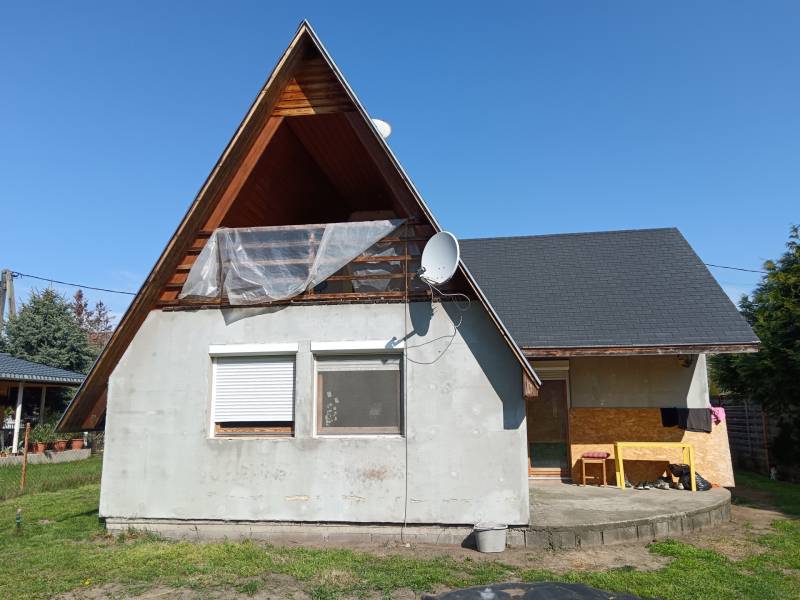 Délegyházán, II. tó vasútállomástól 400 m-re, kerül most értékesítésre egy 80 nm-es (Br. 110 nm-es) szigetelt, öszközműves faház, 40 méterre a tóparttól.A telek 392 m2 nagyságú, térkövezett gépkocsi parkolási lehetőséggel a ház előtt, fúrt kúttal a kertgondozáshoz.A faházat 2007-ben bővítették, így a földszinten egy 25 m2-es nappali-konyha-étkező, fürdő, és két hálószoba,míg a tetőtérben két kisebb szoba és egy szép nagy erkély lett kialakítva. A tetőzete zsindely fedéssel ellátott, (egy kis része még palával fedett), felmenő falazata könnyűszerkezetes faváz, 12 cm-es hőszigeteléssel,plusz a külső homlokzatán 5 cm-es dryvit szigeteléssel, színezve nem lett.Nyílászárói fából, hőszigetelt üvegezéssel.Az ingatlan szerkezetileg jó állapotú, de a belső terei teljes felújítást igényelnek.Belterületi, kivett lakóház, udvar besorolású ingatlan!További információért kérem keressen!