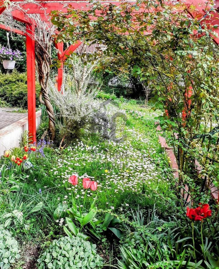 Gárdonyban, festők utcáiban, kertvárosi környezetben eladó egy kétgenerációs, 5 szobás, FEDETT TERASZOS, 150m2-es családi ház, GARÁZZSAL, KERTI KIÜLŐVEL, dús növényekkel teli kertben.A két lakóegység kialakítását egymást nem zavaró bejárással oldották meg. A kisebb lakrész 27,8m2, áll egy konyha-étkező-nappaliból, zuhanyzós fürdőszoba -WC-ből és egy hálószobából. Déli fekvése, világos, napos helységei vidámságot tükröznek.A nagyobb lakórészbe a garázsból is közvetlen bejárhatunk. Kamrából a közlekedőbe és már a nappali étkezőben is vagyunk. Itt elszeparálva de egy légtérben van együtt a konyhával. Tágas ajtók nyílnak a fedett erkélyre és két különálló hálószobára. Egy fürdőszoba, egy külön WC és egy kazánház nyílik a közlekedőből.Kertben egy fedett kiülőn kívül van még egy pergola tetejű is és a kert hátsó részén két faház tárolás céljából.A ház 2004-ben épült, PTH 30-as téglából, 8 cm-es hőszigeteléssel, vasbeton födémmel és Bramac tetőcseréppel. Műanyag nyílászárókon redőny és szúnyogháló is használatban van.Fűtése 1 éves modern SAUNIER DUVAL kazánról, radiátoros hőleadással működik. A nappaliban igazi remekmű, egy gyönyörű cserépkályha is ad meleget téli bekuckózásokhoz.A sok gondoskodással művelt kert fúrt kútról van öntözve. Rengeteg dísznövény és gyümölcsfa található. Magas ágyásokban konyhakerti növények zöldellnek.Közelben elérhető óvoda, iskola és a termál fürdő is. Kertvárosi csendes környezete tökéletes a home office-ra, vagy akár kerti partikra is.Az m7 autópályáról az ingatlan 12 perc alatt megközelíthető, Aldi 12perce Vasútállomás 20percre van gyalogosan.Hívjon, nézzük meg együtt amíg még megvan!Irodai azonosító : H483729