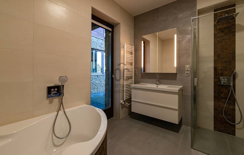 Ez a kivételes, 441 nm-es használt családi ház Nagykovácsiban, Pest vármegyében, a legnagyobb kényelmet és eleganciát kínálja egy exkluzív otthonra vágyó család számára. Az ingatlan egyedülálló tervezésének köszönhetően a tágas nappali és a világos, nagy belmagasságú szobák mind a modern életstílus, mind a családi együttlétek tökéletes színterévé válnak illetve szinten található még egy számos lehetőséggel bíró, liftes helyiség ami lehet akár garázs vagy hobby szoba is . A házban megtalálható 8 szoba és 3 fürdőszoba nemcsak a családtagok, hanem a vendégek kényelmét is szolgálja, így ideális választás lehet befektetési céllal is. A prémium kivitelezésű ingatlan számos modern kényelmi funkcióval rendelkezik, mint például beépített bútorok és szekrények, LED hangulatvilágítás, komplett grillező és kemence a teraszon stb. A házhoz tartozó három garázs férőhely biztosítja a járművek kényelmes tárolását, míg a rendezett 1504nm-es kert és az automata öntözőrendszer gondoskodik arról, hogy a zöld terület mindig ápolt és szép legyen. A kertben található medence és szauna pedig a pihenés és a kikapcsolódás tökéletes helyszínét nyújtja. Az ingatlan csendes, felkapott környéken helyezkedik el, amely nemcsak a nyugalom szigete, hanem a biztonságos életvitel szempontjából is ideális választás. A környék kiváló közlekedési lehetőségekkel rendelkezik, így az autóval közlekedők számára könnyen elérhetőek a főbb útvonalak, míg a tömegközlekedés is jól kiépített, lehetővé téve a gyors és kényelmes bejutást a fővárosba. A közelben található iskolák, boltok és egyéb szolgáltatások pedig tovább növelik az ingatlan vonzerejét. Ez a modern, kandallós, világos és tágas családi ház nemcsak egy otthon, hanem egy életstílus megtestesítője. Az ingatlan állapota kiváló, fűtése gáz (cirko) rendszerrel, hűtése klímával megoldott. A biztonsági ajtó és a videókaputelefon, valamint a riasztórendszer garantálja a lakók biztonságát és nyugalmát. A jelenleg divatos de elcsépelt stílustól eltérő, egyedi megjelenést és valóban élhető, kimondottan harmonikus otthont keresőket azonnal elcsábítja a telekről és magából a házból élvezhető meghitt nyugalom, intimitás és elképesztő panoráma, a mögöttünk lévő erdő közelsége pedig azonnal lenyűgözi.Alapvető műszaki tartalom: :-konyha,beépített Siemens gépekkel-beépített szekrények-központi porszívó-WOLF fűtési rendszer melegvíz kollektorokkal, fa tüzelésű kazán a rendszeren belül–kandalló-5 tonnás auto emelő lift-SLV márkájú LED-es lámpatestek az egész házban-elektromosan mozgatható tetőtéri ablakok és azokon szintén elektromos mozgatású alumínium redőnyök-táv felügyeleti riasztó és kamera rendszer-konditerem, infra szauna Ha Ön is szeretne részese lenni ennek az egyedi lehetőségnek, ne habozzon feltenni kérdéseit, hiszen bármilyen információval szívesen állok rendelkezésére!