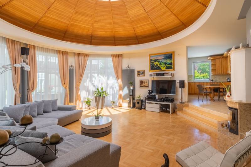 Új tulajdonosát keresi Páty kedvelt részén egy önálló, 285 m2-es alapterületű családi ház. Szépen gondozott privát kert veszi körül, medencével, két állásos garázzsal és további autóbeállóval. Ha igényesen kivitelezett, napfényben úszó, különleges otthont keres családja számára feltétlenül nézze meg!KÖRNYÉK ÉS KÖZLEKEDÉS:- Páty, Pest vármegye – Budapesttől 20 km-re a Zsámbéki medence délkeleti peremén fekszik, az M1-es autópálya mellett. - Családok, nyugodt kertvárosi hangulatot kedvelők által különösen ajánlott település. - A ház Pátykert városrész (Zsámbéki kanyar) egyik zsákutcájában található, amihez iskolák, óvodák, bölcsődék, boltok kényelmesen elérhető távolságban vannak. - Tömegközlekedési eszközök 10 perc séta távolságban elérhetőek.A HÁZ ÁLTALÁNOS JELLEMZŐI:- 2002-ben, 966 m2-es parkosított, sík telekre épült, MINDEN IGÉNYT KIELÉGÍTŐ épület.- 38 cm Porotherm téglából épült, 12 cm szigetelést kapott, monolit vasbeton födémmel ellátott.- A telek kelet-nyugati tájolású, az utcafront szélessége 18 méter.- A ház kiváló adottságú, átgondoltan tervezett, MAGAS MINŐSÉGŰ anyagokkal kivitelezett.- A földszinten 191 m2 élettér áll rendelkezésre, amely két jól elszeparált részből tevődik össze.- Jobb oldalon a ház központi része, a közel 90 m2-es, egész nap FÉNYÁRBAN ÚSZÓ amerikai konyhás nappali és étkező található, valamint egy fél szoba, mely jelenleg egy dolgozószobának lett kialakítva. - Bal oldalon helyezkedik el szülői hálószoba, gardróbbal, külön fürdőszobával.- Továbbá három szoba és egy fürdőszoba mellékhelyiséggel, így biztosítva a család teljes nyugalmát.- A minőségi kivitelezésnek köszönhetően a műszaki állapota kiváló.- A modern belső tér hangulatát az igényes burkolatok, a hatalmas üvegfelületek és a felülvilágító kupola határozza meg.- A Rehau műanyag nyílászárók hőszigetelő üvegezéssel lettek ellátva, belső nyílászárók fa szerkezetűek.- A Weishaupt kondenzációs gáz fűtési rendszer biztosítja a megfelelő hőmérsékletet és a meleg vizet.- Égéstermék elvezetéséhez Schiedel kéményeket alkalmaztak, a ház hűtését klíma biztosítja.- Az igényesen kialakított, privát, PARKOSÍTOTT KERT mellett egész évben használható FEDETT MEDENCE szolgálja a kényelmet.- Az alsó szinten található KÉT ÁLLÁSOS GARÁZS mellett, további két nyitott autóbeállási lehetőség van.AZ ALSÓ SZINT FELOSZTÁSA:- kazánház mosókonyhával,- SZAUNA fürdőszobával,- külön mellékhelyiség,- KONDITEREM és közösségi tér amely teljesértékű ablakkal ellátott, kapcsolódik a garázshoz és a belső lépcsőn keresztül megközelíthető földszinti lakótérhez.FÖLDSZINT FELOSZTÁSA:- a keleti oldalon található a SZÜLŐI HÁLÓSZOBA GARDRÓBBAL és saját fürdőszobával,- további 3 hálószoba,- fürdőszoba zuhanyzóval, JAKUZZIVAL és mellékhelyiséggel,- a nyugati oldalon található a közel 90 m2-es amerikai konyhás nappali étkezővel, egy szoba és egy különálló mellékhelyiség,- FEDETT TERASZ, medence és kert kapcsolattal.FENNTARTÁSI KÖLTSÉGEK:- A ház magas minőségben épült, műszaki állapota kiváló, a Weishaupt fűtési rendszernek és nyílászáróinak köszönhetően a gáz költsége nagyságrendileg 30.000.- Ft.- A vízdíj medence használatával együtt 15-20.000.- Ft, az áram 20-30.000.- Ft között, fogyasztás alapján számolható.AZ INGATLAN MEGTEKINTHETŐ:- VIDEÓN,- személyesen,- online személyes bejelentkezéssel.FINANSZÍROZÁSBAN (AKÁR ONLINE IS) SEGÍTÜNK:- Bank-független hitelcenterünk díjmentesen versenyezteti az összes hazai bank és hitelintézet ajánlatát.- Önnek annyi a dolga, hogy egyeztet kollégáinkkal, majd a személyre szabott ajánlatok közül kiválasztja a hosszú távon is legkedvezőbb konstrukciót.- Szakértőink több mint 20 éves tapasztalattal állnak rendelkezésére: fogyasztóbarát lakáshitelek, babaváró hitel, teljes körű CSOK Plusz és Otthon Start ügyintézés egy helyen.- Előzetes időpont-egyeztetéssel akár munkaidőn túl is rendelkezésére állunk.Amennyiben tágad, kényelmes otthont keres családja számára a főváros közelében, csendes környezetben HÍVJON FEL és nézzük meg együtt.