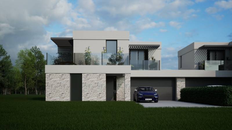 Új építésű prémium kategóriás, nappali + 4 szobás ikerház eladó Pallagon!!Debrecen-Pallag közkedvelt lakóparkjában új építésű, modern megjelenésű ikerház 2. lakóegysége Eladó!Az építkezés folyamatban van!!Az ikerházak paraméterei:- 200 nm-s alapterület 500 nm-es telekrésszel, modern minimáldizájn megjelenéssel, Nappali+4 szobás, 3 fürdőszobás elrendezéssel- külső falazata: 30 cm -es Phorotherm tégla+ 15 cm vastag grafitos külső szigetelés- 3 rétegű 7 kamrás hőszigetelt, kívül színes műanyag nyílászárók, szekcionált elektromos garázskapu- fűtése levegő-levegő hőszivattyús rendszerrel valósul meg, minden helyiségben padlófűtés és inverteres klímás hűtés \"H\" tarifás 3x20A elektromos hálózatról- Prémium kategóriás burkolatok, szaniterek- Élhető tágas terek, alaposan átgondolt tervezés a tulajdonos kényelme érdekében- Nagy méretű 60 nm-es, ideális tájolású Nappali-étkező-konyha egy légtérben- A felső szinten 3 tetőterasz közel 30 nm-enAz építkezés a szerződéskötéstől számítva közel 1 évet vesz igénybe!!Amennyiben felkeltette érdeklődését az ingatlan teljes dokumentációval illetve ingyenes CSOK+ kedvezményes hitelügyintézéssel várjuk irodánkban!