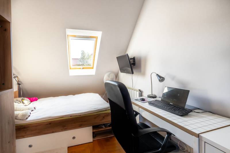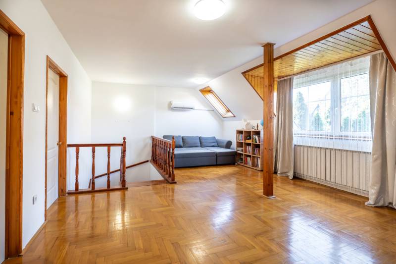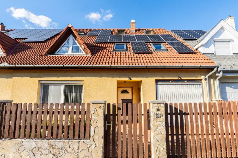 Napelemes, Madárcsicsergős Otthon a Madách-ban!Dunakeszi az északi agglomeráció központja, egy nyugodt, Duna-menti kertváros mely megújuló parti sétányával, kiváló iskoláival, folyamatos infrastrukturális és intézményi fejlesztéseivel az egyik legdinamikusabban fejlődő és szépülő hely a Dunakanyar kapujában.Itt, a város méltán kedvelt, kiválóan lokált területén, a Madách Lakópark tüneményes hangulatú házainak szomszédságában került eladósorba egy szép állapotú sorházi lakás.Csendes zsákutcában, barátságos lakóközösségű gondos porták mellett kapott helyet.A ház 97-es építésű, a kornak megfelelő -és akkor sokkal szigorúbban vett- építési szabványoknak megfelelően épült masszív alapozással, 30as Porotherm téglatestekből, Sofatherm hőszigetelő üvegezéssel ellátott romantikus osztott üveges nyílászárókkal, tetőtérben új ablakokkal, lapradiátoros fűtéssel melyet még GARANCIÁLIS, frissen beépített kondenzációs cirkókazán üzemeltet, pót-kéménnyel, ami lehetőséget biztosít kandalló vagy mázaskerámia cserépkályha telepítésére a nappaliba.Gondosan szigetelt födém és tetősík, - cserépfedéssel.Földszinten tágas, jól bútorozható így tárolóként is funkcionáló GARÁZS, frissen burkolt letisztult előszoba, étkező/hall, nagy méretű térben félig szeparált konyha kamrakapcsolattal, déli tájolású nappali, fürdőszoba, szeparált illemhely kaptak helyet. Az kertre nyíló terasz fedett, a kertrész bűbájos, hatalmas thujákkal, díszcserjékkel, konyhakerttel szolgálja a zavartalan pihenést. Aktív, modern nagycsaládnak ideális, pont akkora zöldterülettel aminek gondozása nem teher, de a hétvégi garden partyhoz elengedhetetlen!Emeleti szinten 3 hálószoba, nagy fürdőszoba, WC kézmosóval és közösségi tér található, amely tökéletes játszó, olvasó vagy tanulósaroknak, home office kialakítására, de könnyűszerrel nyerhetünk belőle még egy hálószobát. Gyönyörű tömörfa lépcsősor, gazdagon lakozott parketta és lambéria csempésznek otthonos, meleg hangulatot a helyiségekbe.Az emeletről még egy szint elérhető, mellyel abszolút tetőtérben 2 helyiséges lakrészt nyertek a padlástér beépítésével. Kiváló lehetőség kamasz gyermek elhelyezésére, xbox-szobának, movie room-nak, vagy ide is telepíthető kellemes környezetbe a dolgozószoba.A 3 éve telepített NAPELEMRENDSZER 4.55kW teljesítményű, a teljes ház áramellátását fedezi, és meg elektromos autó töltését is elbírná. Együttműködik a 3.5kW-os klímaegységekkel így a hűtést nyáron könnyedén megoldja, a teli időszakban pedig rásegít a hőszabályozásra.A nagy terek és kényelmes elrendezés lehetővé teszi kisebb átalakításokkal 2 generáció együttélésének kiszolgálására!Közelben: MINDEN, ami a hétköznapokhoz szükséges, kis és nagyobb élelmiszerbolt, zöldséges, cukrászda, több általános iskola, óvodák, uszoda, buszmegálló, vasútállomás (Nyugati PU 30perc)Jöjjön el, nézze meg, ha maximálisan ellátott területen keres Családjának bűbájos Otthont, ahol a kertben teljesen megszűnik a külvilág zaja, mégis karnyújtásnyira a Főváros!