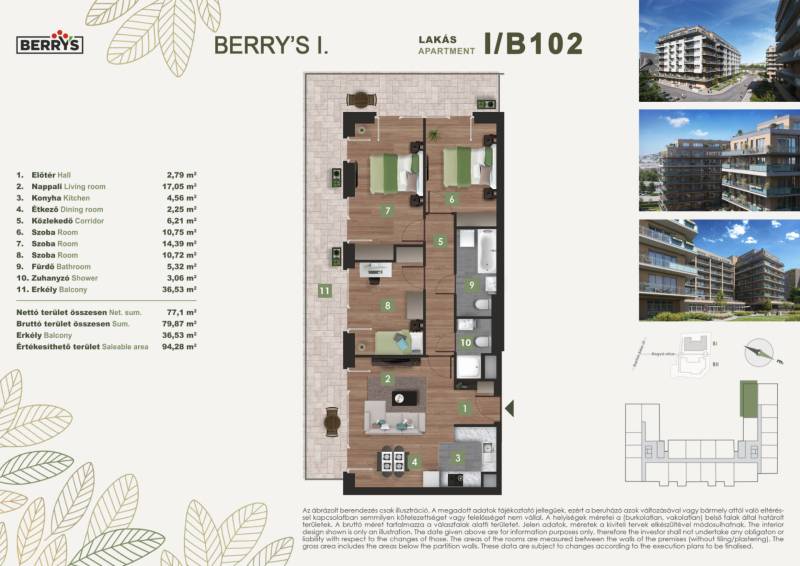 Projekt bemutatásaA XI. kerületi Bartók Béla úthoz közel épülő lakópark egy csendes, nyugodt környezetet kínál a város forgatagához közel. Az újbudai városrészben kialakított új lakónegyed kiváló közlekedési kapcsolatokkal rendelkezik. A zsákutcából nyíló elhelyezkedés biztosítja a forgalommentes, zavartalan lakókörnyezeti életet.A lakópark elhelyezkedése ideális azok számára, akik gyorsan és kényelmesen szeretnék elérni a város bármely pontját. A 4-es metró közelsége, az 1-2 perc sétatávolságra elérhető villamosok és a környéken közlekedő nappali és éjszakai autóbuszjáratok kiváló közlekedési lehetőséget biztosítanak. Az M1-es és M7-es autópályák közelsége, vagy a Kelenföld vasútállomás megkönnyíti az ország minden részébe, kiemelten a Balatonhoz és a Velencei tóhoz tervezett utazásokat.A legmodernebb mennyezeti hűtő- fűtő rendszernek köszönhetően alacsony fenntartási költségek várnak. A zöldtetők és az épület körüli zöldterületek nemcsak természetes hőszigetelést adnak, de a közösségi életet is támogatják.A gyönyörű kilátás nyugalma a városi nyüzsgés harmóniájával. A Berry’s minden lakásához tartozik loggia, erkély, vagy terasz!Várható műszaki átadás: 2027 vége