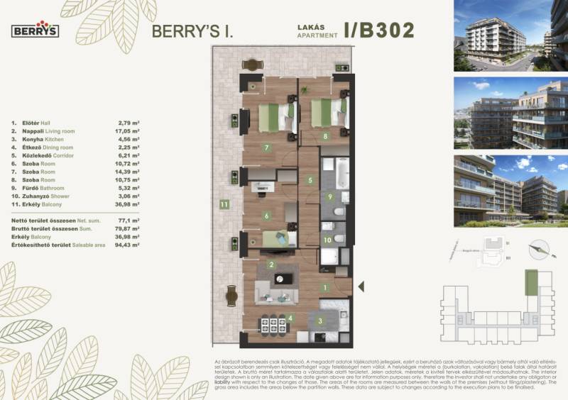 Projekt bemutatásaA XI. kerületi Bartók Béla úthoz közel épülő lakópark egy csendes, nyugodt környezetet kínál a város forgatagához közel. Az újbudai városrészben kialakított új lakónegyed kiváló közlekedési kapcsolatokkal rendelkezik. A zsákutcából nyíló elhelyezkedés biztosítja a forgalommentes, zavartalan lakókörnyezeti életet.A lakópark elhelyezkedése ideális azok számára, akik gyorsan és kényelmesen szeretnék elérni a város bármely pontját. A 4-es metró közelsége, az 1-2 perc sétatávolságra elérhető villamosok és a környéken közlekedő nappali és éjszakai autóbuszjáratok kiváló közlekedési lehetőséget biztosítanak. Az M1-es és M7-es autópályák közelsége, vagy a Kelenföld vasútállomás megkönnyíti az ország minden részébe, kiemelten a Balatonhoz és a Velencei tóhoz tervezett utazásokat.A legmodernebb mennyezeti hűtő- fűtő rendszernek köszönhetően alacsony fenntartási költségek várnak. A zöldtetők és az épület körüli zöldterületek nemcsak természetes hőszigetelést adnak, de a közösségi életet is támogatják.A gyönyörű kilátás nyugalma a városi nyüzsgés harmóniájával. A Berry’s minden lakásához tartozik loggia, erkély, vagy terasz!Várható műszaki átadás: 2027 vége