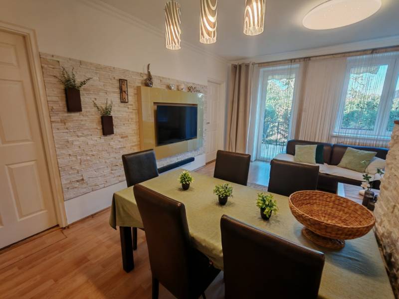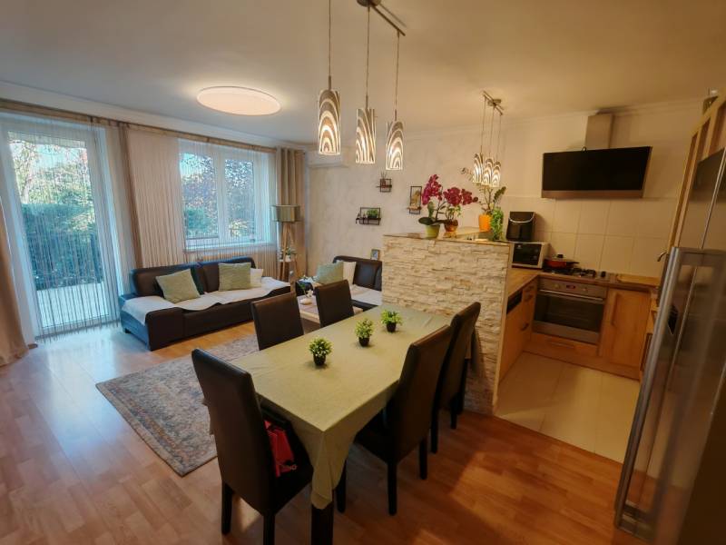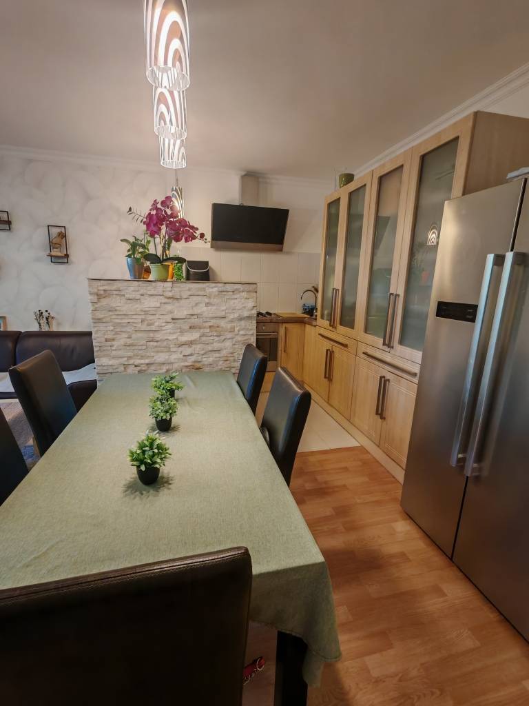 Csak nálunk!Otthon Start hitel is igényelhető!Csömör, Ibolya utca – családbarát ikerház lakás saját kerttelBudapest XVI. kerületének szomszédságában, Csömör csendes utcájában eladó egy 1990-ben épült, tégla ikerház egyik lakása.Az ingatlan nettó 89 m² lakótérrel rendelkezik, amelyhez tartozik egy 45 m²-es garázs és mosókonyha szint, valamint egy 24 m²-es terasz, amely közvetlenül a nappaliból nyílik.Belső elrendezése:-Előszoba – 5,13 m²-Közlekedő – 5,1 m²-Amerikai nappali + étkező – 26,8 m²-Konyha + étkező – 9,18 m²-Szoba – 9 m²-Szoba – 11,1 m²-Szoba – 12 m²-Szoba – 12 m²-Fürdő – 8,13 m²-WC – 1,85 m²-Terasz – 24,1 m²A fő falak 50 cm vastag téglából épültek szigetelés nincs,de nem indokolt,mert kiváló a hőtartása az ingatlannak.Műanyag nyílászárók 2 réteg üveg 5 légkamra. Gázkazán a mosókonyhában nem a lakótérben ,radiátoros fűtéssel.2 db inverteres klíma 320 m² saját kert, amely a ház mögött helyezkedik el, így nyugodt, intim hangulatot biztosít.Garázs + 3 felszíni autóbeálló.Iker szomszéd lakás az emeleten helyezkedik el nyugodt csendes család kiváló hangszigetelés ügyvédi megosztási szerződés van az ingatlanhoz.Hitelezhető az ingatlan!Az kertkapcsolatos lakás ideális választás lehet családok számára, akik Budapest közelségében, mégis nyugodt, kertvárosi környezetben keresnek otthont.Kiváló közlekedés.Jöjjön el nézze meg tegyen ajánlatot!I.V.