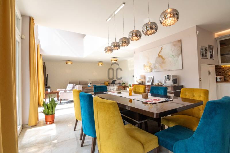 MIÉRT EZT VÁLASSZA?* Lélegzetelállító panoráma a környező tájra.* Hatalmas, 130 m²-es terasz- és erkélyegyüttes saját kültéri medencével.* Prémium minőségű, kompromisszumok nélküli építkezés.* Nagyvonalú terek: 220 m² nettó lakótér, kiváló elrendezéssel 4 szinten.* Ideális családoknak: Tágas közösségi terek és négy különnyíló hálószoba.* Zöldövezeti, presztízsértékű elhelyezkedés Diósdliget csendes részén.* 2 gépjármű számára kialakított beállási lehetőség a telken.* Praktikus tárolás és egyedi hangulat a saját borospincével.AZ INGATLANEz a Diósdligeten található, minden igényt kielégítő, 220 m² nettó (364 m² bruttó) lakóterületű családi ház a luxus és a kényelem tökéletes ötvözete. Az ingatlanhoz egy 300 m²-es, intim kert és egy összesen 130 m²-es terasz- és erkélyegyüttes tartozik, melynek központi eleme a saját medence.A ház négy szinten kínál átgondolt élettereket:* A földszint a társasági élet központja: itt található a 30 m²-es nappali, egy tágas, 30 m²-es konyha-étkező, valamint egy dolgozószoba. Innen nyílik a lenyűgöző, 126 m²-es panorámás terasz és a medencetér, amely tökéletes helyszíne családi és baráti összejöveteleknek.* Az első emeleten kapott helyet a főbejárat, egy tágas előszoba, valamint egy komplett szülői lakrész, mely saját hálószobából, gardróbból és fürdőszobából áll, teljes intimitást biztosítva.* A második emeleten további három, különnyíló hálószoba és egy fürdőszoba található, amely ideális a gyermekek vagy vendégek számára.* A szuterén szinten egy hangulatos borospince és a kazánház kapott helyet.A magas minőségű kivitelezés, a praktikus elrendezés és a páratlan panoráma teszi ezt az otthont igazán különlegessé.KÖRNYÉKDiósdliget a budapesti agglomeráció egyik legkeresettebb, legmagasabb presztízsű része. Csendes, biztonságos, zöldövezeti környezet jellemzi, kiváló levegővel. Az infrastruktúra fejlett, Budapest autóval és tömegközlekedéssel is könnyen és gyorsan elérhető. Ideális választás mindazoknak, akik a város közelségére és a természet nyugalmára egyaránt vágynak.MŰSZAKI ADATOK* Szerkezet: Magas minőségű építés, 15 cm-es külső hőszigeteléssel.* Nyílászárók: Modern, hőszigetelt műanyag ablakok és ajtók.* Fűtés: Gáz-cirkó, padlófűtéssel és radiátoros hőleadókkal kombinálva.* Hűtés: Kiépített klímarendszer.* Terasz és Erkély: Összesen 130 m².* Parkolás: 2 autó számára fedetlen gépkocsibeálló a telken belül.* Extrák: Kültéri medence, borospince.PARKOLÁS2 állásos fedetlen gépkocsi-beálló a saját telken belül.KIKNEK AJÁNLOTT?Tökéletes választás:* Nagyobb családoknak, akik tágas, jól szeparált, többgenerációs együttélésre is alkalmas élettereket keresnek.* Igényes vásárlóknak, akik egy reprezentatív, prémium minőségű és értékálló otthont szeretnének.* A szabadtéri élet kedvelőinek, akik kiélveznék a hatalmas, panorámás terasz és a saját medence nyújtotta lehetőségeket.Irányár: 279.000.000 Ft (kb. 711,000 EUR)Amennyiben az ingatlan felkeltette érdeklődését, keressen bizalommal, hogy további információkkal szolgálhassak és megszervezhessek egy személyes bemutatót.