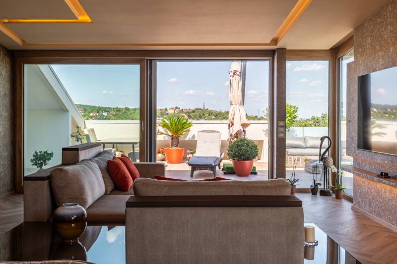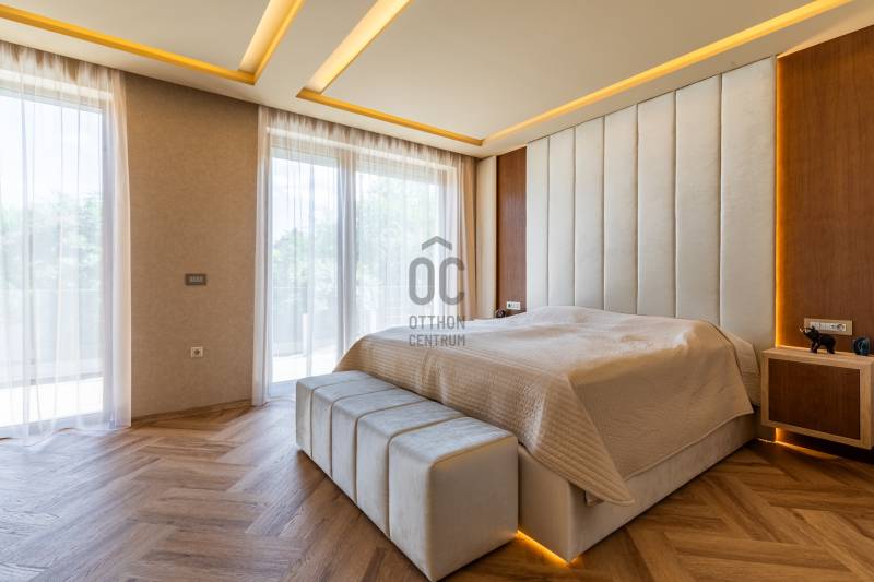 Egy ingatlan, amely újradefiniálja a prémium otthon fogalmát: háromszintes ikerház-rész lifttel, pazar panorámával és kiemelkedő minőséggel. Üdv itthon! RÖVID ÖSSZEFOGLALÓIII. kerület Testvérhegyen, Domoszló útján eladó ez a 2024-ben épült ikerház jellegű, jogilag társasházként nyilvántartott kivételesen magas minőségű lakás. A telek össz. területe 2030m2, melyre 2 épület, 2-2 lakással épült. A ház nyélen keresztül megközelíthető, így az utcától védett, csendes és privát. A kert megosztásra került, így a lakáshoz tartozik egy 111m2-es privát kertrész. A lakás alapterülete a garázsszinttel és a beépített terasszal együtt 206m2, melyhez tartozik egy 48m2-es tetőterasz csodás zöld panorámával, illetve a hálószobákból nyíló további 30m2 erkély. Három szinten 4 háló, ebből háromnak saját fürdője van, dupla állásos garázs elektromos töltővel. A beruházó magának tartotta meg, saját ízlése és igényszintje szerint fejezte be. Eddig jól hangzik? Alább részletesebben a további információk.LOKÁCIÓ – TESTVÉRHEGYA Domoszló út környezete Testvérhegy egyik legkedveltebb része – egy olyan kertvárosi szeglet, ahol a családok nyugalmat, biztonságot és minőségi életet találnak, miközben a főváros pezsgése is karnyújtásnyira van.Itt reggelenként friss levegő madárdal és hegyi panoráma látványa fogad, de iskola, bolt, kávézó vagy uszoda sincs több mint pár perc autózásra vagy sétára. A környék rendezett, gondozott, tele van családi házakkal, óriási fenyőkkel és meglepően jó közösséggel. A Domoszló út ugyan csendes, de közlekedési szempontból kiválóan elérhető: az M0-s gyorsforgalmi út, az Árpád-híd vagy épp Békásmegyer vasútállomása is rövid idő alatt elérhető autóval.Kiváló infrastruktúra – Minden, ami a család kényelméhez kellIskolák, óvodák: A környék kiemelkedő oktatási lehetőségeket kínál, köztük a népszerű Csillaghegyi Általános Iskola, a Bárczi Géza Általános Iskola vagy a Waldorf Óvoda és - Iskola is rövid autóútra található.A közeli Auchan, Decathlon és OBI áruházak mellett elérhető a Római-parti kis piac, a Lajos utcai termelői piac, vagy épp a helyiek egyik kedvence, a Csillag Center, ahol minden kéznél van – patika, posta, pékség és kávézó is. Több magánorvosi rendelő, gyermekorvos és a Szent Margit Kórház is gyorsan elérhető szükség esetén.A környék valódi ereje nemcsak a praktikum, hanem az életminőség:A Római-part 10 percen belül elérhető – bicikliúttal, éttermekkel, fagylaltozókkal és a Dunára néző stégekkel, ahol egy családi délután is nyaralásnak tűnik. A Duna-parti sétány, a Kossuth Lajos üdülőpart és a Fellini Római Kultúrbisztró a helyiek kedvenc találkozóhelyei – kulturális programokkal, élő zenével, naplementés borozásokkal. Csillaghegyi Árpád Forrásfürdő: teljesen felújított, egész évben működő wellness- és élményfürdő – beltéri medencékkel, szaunavilággal, családi élményzónával. Hármashatár-hegy vagy a közeli Kevély-erdő pedig tökéletesek egy hétvégi túrázáshoz, családi piknikhez vagy kutyasétáltatáshoz.A HÁZA ház friss, 2024-es átadással, gondos tervezés és kivitelezés eredményeként jött létre. Az ingatlan már az első pillantásra lenyűgöz: a karakteres, mégis elegáns homlokzat, a nagy üvegfelületek és az egyedi formavilág azonnal kiemelik a tömegből. Az épületben saját, privát lift található, amely megkönnyíti a mindennapokat – generációkon átívelő otthonná is válhat.A három szinten elosztott lakótér belsőépítészetileg is kivételes: letisztult, mégis meleg enteriőr, prémium burkolatok, időtálló anyaghasználat, és minden apró részletre kiterjedő figyelem jellemzi. A nappali tágas és világos, közvetlen teraszkapcsolattal – a panorámás kilátás pedig minden évszakban páratlan élményt nyújt. Magazinba illő en-suite hálószobái privát szférát biztosítanak a család minden tagja számára.Igény szerint szívesen küldök részletes műszaki leírást, amely tartalmazza a az épült általános jellemzőit, a épület-szerkezeti elemek leírását, műszaki specifikációkat, épületgépészeti és elektromos leírást, Smart Home csomag (Okos Otthon) leírást, stb.Parkolás - 2 állásos garázsban, elektromos töltővelKiknek ajánljuk?Ez az ingatlan tudatosan családok számára készült: akik értékelik a természet közelségét, a csendes, biztonságos környezetet, ugyanakkor nem szeretnének kompromisszumot kötni a városi kényelemmel és a minőséggel. A liftes kialakítás többgenerációs együttélést is lehetővé tesz, míg a belső tér rugalmassága alkalmazkodik a változó élethelyzetekhez is.Szívesen részt venne egy élményekkel teli, minden érzékszervre ható ingatlan bemutatón? Csak a megadott számot szükséges tárcsáznia hozzá!----------------------------------------------Díjmentes, bankfüggetlen hiteltanácsadással támogatjuk vevő ügyfeleinket a számukra legelőnyösebb finanszírozási döntések meghozatalában. Opcionálisan igénybe vehető kiegészítő szolgáltatásainkkal – mint ügyvédi közreműködés, energetikai tanúsítvány vagy villamos biztonsági felülvizsgálat – teljes körű szakmai támogatást nyújtunk az adásvétel folyamatának minden egyes lépésénél.----------------------------------------------A hirdetésben szereplő információk tájékoztató jellegűek. A tévedés és az árváltoztatás jogát fenntartjuk. Az esetleges elírásokért és technikai hibákért felelősséget nem vállalunk.