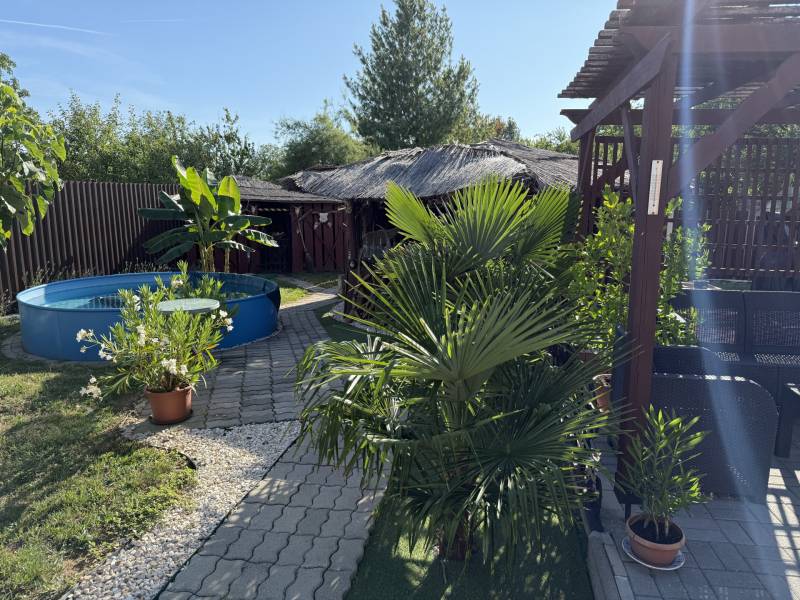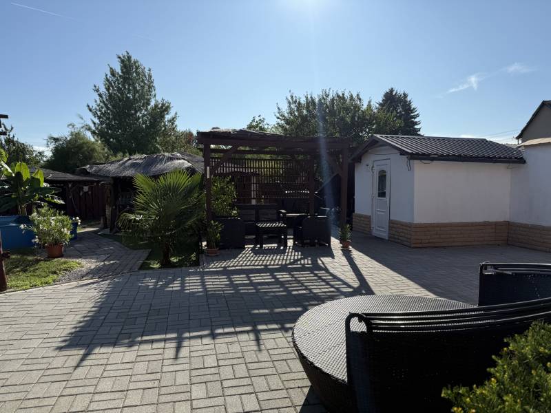 Képzeld el, hogy minden nap nyaralás hangulatában telik az otthonodban! Eladó egy 125 m²-es, 3 szobás, teljesen felújított családi ház, amely nemcsak kényelmes otthont, hanem igazi életstílust kínál.Az ingatlan különlegessége a sokoldalúan használható üzlethelyiség, ami lehet saját vállalkozásod helyszíne, egy külön lakrész vagy akár tágas nappali is – csak rajtad múlik!Miért fogsz beleszeretni?-Teljes körű felújítás: új vezetékek, burkolatok, konyha, fürdő és szaniterek-Új kerítés, kovácsoltvas kapu, igényes térkövezés és külső szigetelés-Modern biztonság és kényelem: Hikvision kamerarendszer, kódos/mágneskártyás bejárati ajtó-Okosotthon rendszer (Alexa), amely a világítást és a klímát vezérli – bővíthető, időzíthetőKert, ami minden nap kikapcsolódást nyújt:-Saját süllyesztett medence szűrőrendszerrel-Mediterrán hangulat: banánfák, pálmák, gondozott kert-Három oldalról zárt, akácfából épült pagoda kemencével, nyári konyhaként berendezve – baráti összejövetelek tökéletes helyszíne-Hangulatos pergola a pihenéshezPraktikum és komfort:Fűtés gázkonvektorral és 2 inverteres klímávalMeleg víz villanybojlerrel10 m² pince extra tárolási lehetőséggelBerendezéssel együtt eladó! Ez a ház több, mint egy ingatlan – egy hely, ahol a családi otthon és a kikapcsolódás élménye találkozik.