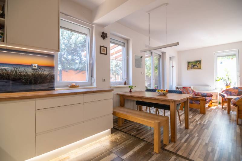 Megvételre kínálunk egy jó elosztású, jó állapotú kertes ikerház hátsó részét Újpéteritelepen!Az ingatlanról:✔️ 113 m2-es, nappali+ 4 hálószobás (Tulajdonilapon 96 m2-es, mert a garázst végül szobává alakították de így összesen 113 m2)✔️ földszinten: nappali-étkező-konyha, előszoba, fürdőszoba, 1 szoba.✔️ fedett terasz 12 m2✔️ Kert: 328 m2✔️ emeleten: 3 szoba, fürdőszoba, közlekedő.✔️ minden szoba külön nyíló✔️ ablakok műanyagok redőnnyel és szúnyoghálóval.✔️ nappali keleti tájolású✔️ fűtése: kombi cirkóval működik, mindenhol radiátorok illetve a földszinten a szobán kívűl mindenhol padlófűtésA ház 2016-ban épült 30 cm vastag téglából.A betoncserép tetőn elhelyezett napelemek segítik az áramszámla alacsonyan tartását.10 cm szigetelés.Az ingatlanhoz tartozik egy kerti tároló is.Jogilag társasház. Parkolni telken belül 3 autóval lehetséges illetve a ház előtt.Közelben minden megtalálható ami fontos a mindennapokhoz!✔️ CSOK+ és sima normál banki hitelre is alkalmas ingatlan!Ha felkeltette érdeklődésedet keress nyugodtan a hét bármelyik napján!
