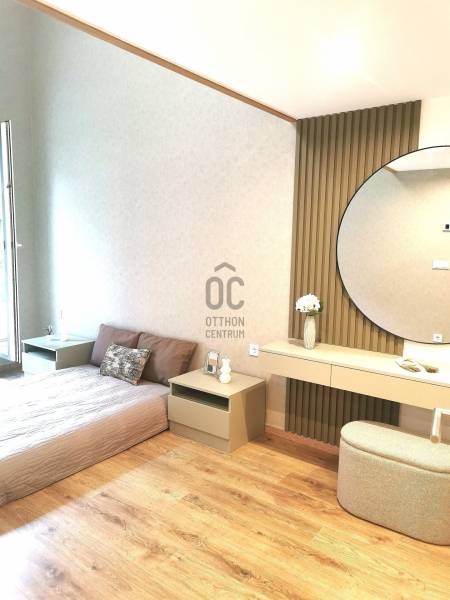 XIII. kerület – MODERN, lakberendező által megálmodott NAPPALI+ 2,5 szobás ÚJ OTTHON ÓRIÁSI TERASSZAL ÉS KERTKAPCSOLATTAL, amely igazi ritkaság a budapesti lakáspiacon!KÖRNYÉK, AHOL ÉLMÉNY A MINDENNAPA Nyugati pályaudvar és a Westend City Center mindössze pár perc sétára – így a kiváló tömegközlekedés, a vásárlási lehetőségek és a város pezsgő élete szó szerint karnyújtásnyira vannak. Innen bárhová könnyedén eljut, legyen szó belvárosi programokról vagy hétvégi kiruccanásról.KORSZERŰ TÁRSASHÁZA környék egyik legnívósabb, prémium minőségben épült társasháza, ahol a kivitelezés és a részletek igényessége valódi értéket képvisel. Stílus, kényelem és megbízhatóság egy helyen. Ez a különleges lakás egy 2023 év végén elkészült, modern társasházban található. A rendezett, tágas közös terek, a nyugodt és biztonságos környék, valamint a barátságos lakóközösség valódi otthonos hangulatot teremtenek. A földszinti elhelyezkedésnek köszönhetően 40 m²- ES SAJÁT KERT ÉS NAPFÉNYES TERASZ tartozik a lakáshoz – ez a párosítás igazi ritkaság a fővárosban! A nagy méretű erkélyt mind a nappaliból mind a hálószobából meg tudjuk közelíteni és máris élvezhetjük a tágas saját kertünket is. A LAKÁS – modern, igényes és azonnal költözhetőA 4,5 méteres belmagasság fényes, levegős életteret biztosít. A alapterülethez 16 m² teljes értékű galéria társul, ahol hálószoba és gardróbszoba is kialakításra került, beépített bútorokkal. Az amerikai konyhás nappali és a külön hálószoba ideális elrendezést nyújt pároknak, kis családoknak vagy akár befektetőknek is.A külön fürdőszoba és wc tovább növeli a kényelmet, míg a hatalmas terasz és a saját kert tökéletes helyszínt adhat reggeli kávéhoz, nyári olvasáshoz vagy baráti grillezéshez.Az ízlésesen tervezett egyedi konyhában helyet kapott egy mosogatógép, indukciós főzőlap, sütő-mikró, beépített hűtő-fagyasztó is.A lakás teljesen új, korszerű műszaki megoldásokkal felszerelt (hőszivattyús hűtés-fűtés) , alacsony rezsiköltséggel és teljes bútorzattal várja első lakóját. AZONNAL költözhető.A lakás esetleges változtatásához átalakítási terv a képek között található amely bemutatja a térben rejlő lehetőségeket és inspirációt nyújt a leendő tulajdonosnak.A képeken látható beépített bútorok és szabadon álló bútorok a vételár részét képezik valamint egyéb berendezési tárgyak igény szerint megvásárolhatók.Parkolóhely a többszintes mélygarázsban opcionálisan vásárolható vagy bérelhető.Ez több, mint egy lakás – ez egy ÉLETSTÍLUS, a város szívében, mégis zöld környezetben.Ne hagyja ki, jöjjön el, és tapasztalja meg személyesen!Bármi kérdése van vagy szeretné személyesen megtekinteni az ingatlant hívjon bizalommal.