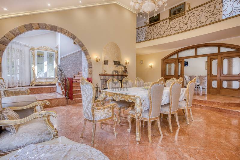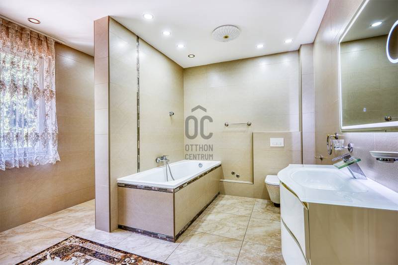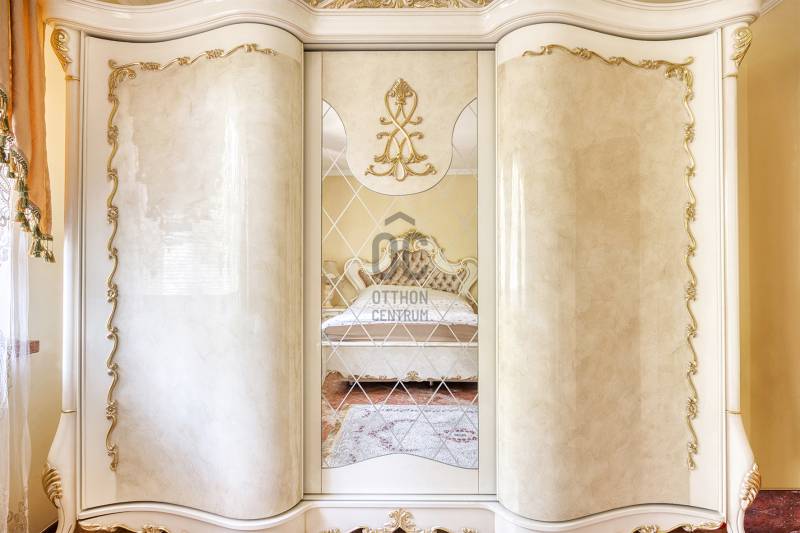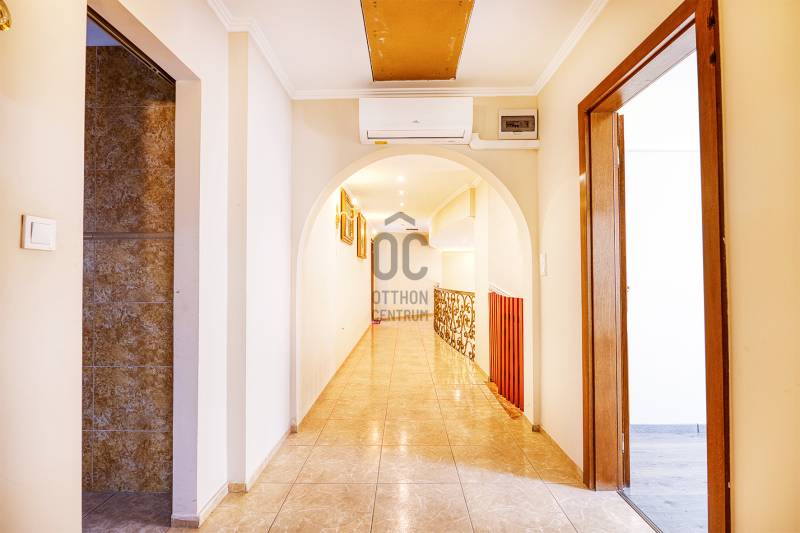 A 810 m2-es telken található, 450 m2-es, belső kétszintes, kiváló elosztású családi ház remek választás nagycsaládosoknak vagy akár kétgenerációs otthonnak.Az ingatlanba belépve tágas előszoba érkezünk mindennek van helye innen nyílik egy balra egy hálószoba, és hatalmas fürdőszoba.Jobbra található lakás szíve, egy csodálatosan elegáns nappali, ahol a 5 méteres, a belmagasság kandallóval hatalmas térrel.A konyha és az étkező 28 nm-es.A felső szinten 3 hálószoba 2 fürdőszoba és egy gardróbkerült kialakításra.