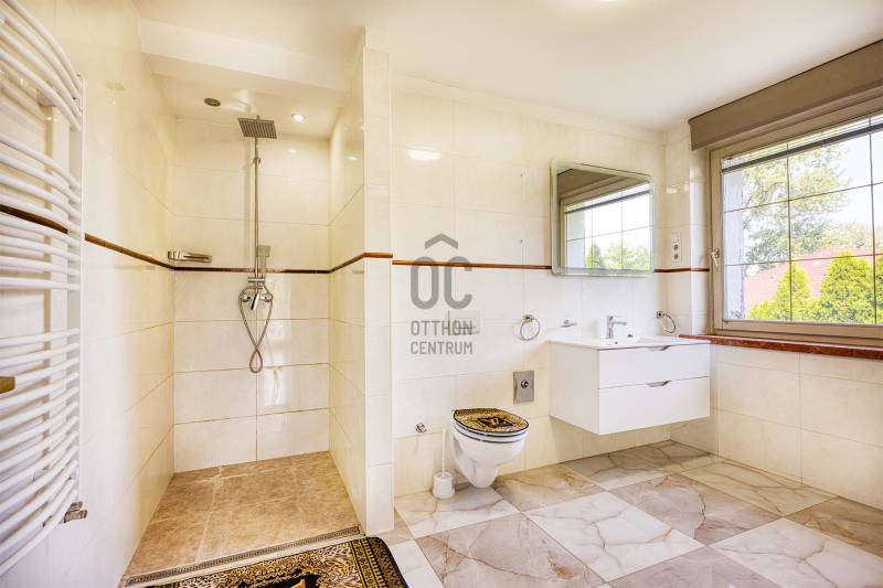 Főbb jellemzők:- 4 tágas szoba, - 1 gardrób szoba- 3 fürdőszoba,- konyha, speiz, - Fedett terasz az udvar felé, erkély kertre nyílóan- Központi, gázcirkós fűtés, minden helyiségben padlófűtés- Törölközőszárítós radiátorok a fürdőszobákban- Klímaberendezés modern, energiatakarékos hűtéshez- Riasztórendszer kiépítve- Körbejárható ház, tágas udvar, automata öntözőrendszerrel nagy kert- 3 autós, tágas garázs - Nyitott terasz & medenceA ház műszakilag és építészetileg is jó állapotú, minimális átalakítással akár két önálló lakásként is használható.Gyors időpont-egyeztetés lehetséges személyes megtekintéshez, főként napközben, világos órákban ajánlott.További információért kérem, vegye fel velem a kapcsolatot üzenetben vagy telefonon!