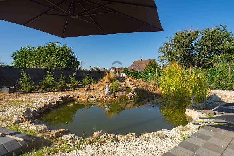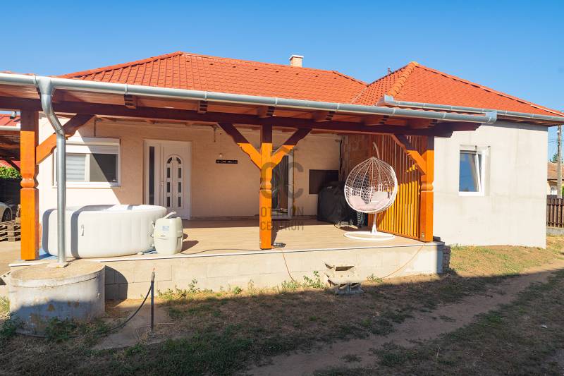 Dányban kínálunk megvásárlásra egy gyönyörűen felújított, földszintes önálló családi házat 1230 nm-es telekkel, kerti tóval, sütögetővel, hatalmas fedett terasszal, két autó számára fedett beállóval. A ház az utóbbi években műszakilag és esztétikailag fel lett újítva, komplett tető csere 2024-ben, fűtés korszerűsítés (kondenzációs kazán), elektromos hálózat, vízcsövek,. lefolyó csövek is cserélve lettek. Továbbá a nyílászárók, konyha, fürdőszoba, szaniterek és burkolatok is megújultak. Modern, esztétikus belső design jellemzi a házat. A nagy, fedett teraszról nyílik a bejárat, itt található egy előszoba pakolási lehetőséggel, majd a modern bútorral és gépekkel felszerelt konyha-étkező, kamra (alatta pince), egy szép zuhanyzós és kádas fürdőszoba, nagy hálószoba, teraszkapcsolatos nappali és még egy hálószoba, mely befejezésre vár (festés és burkolás van hátra, igény esetén a tulajdonos befejezi külön megállapodás alapján). A ház első része vegyes falazat, szigetelt alappal, a további részek tégla építésűek. A tégla részeken 20 cm dryvit szigetelés van, A tetőt Tondach cserép fedi. A teljes bútorzat a vételár részét képezi, tehermentes ingatlan, rövid időn belül birtokba vehető.