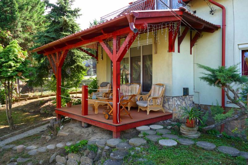 CSOBÁNKA csendes zsák utcájában, panorámás családi ház, egyik lakása (ikerház) része eladóA családi ház ügyvéd általi megosztással két külön lakásra osztható- 2005-ben épült- MEDITERRÁN hangulatú, otthonos - szigetelt-tégla építésű- belső kétszintes, tetőtéri-keleti fekvésű- bruttó 154,28 nm-40 nm tágas nappali, kandallóval, bel magassága 4 méter , látszó gerendákkal , különleges hangulattal- hegyekre néző , panorámás nappali, nagy ablak felületekkel, terasszal- világos tágas konyha étkezővel, egyedileg gyártott fa bútorokkal - három nagy szoba - nagy dupla mosdós , sarokkádas fürdőszoba , épített bútorral - gardrób szoba- fűtés gázcirkóval , valamint a nappaliban kandallóval lehetséges- egyéni megrendelésre gyártott fa nyílászárók, dupla üveggel- összközműves, saját mérőórákkal- önálló garázs a telek első részében, mely egy nagyobb, vagy két kisebb autó beállására alkalmas ( tégla építésű, jól szigetelt- saját önálló kert is tartozik a lakáshoz kb 200 nm- teraszos kialakítású a kert,- fedett terasz - az utca aszfaltos, a lakáshoz díszkő burkolaton keresztül sétálhatunk fel.- a kert rendezett , gyönyörű , fák , örökzöldek , cserjék , bokrok sokasága , valamint virágzó növények színesítik Tömegközlekedés, óvoda iskola, bevásárlási lehetőség séta távolságban. Sportolási lehetőség , túrázás, kerékpározás , kirándulás , kedvelt túra útvonalakon .
