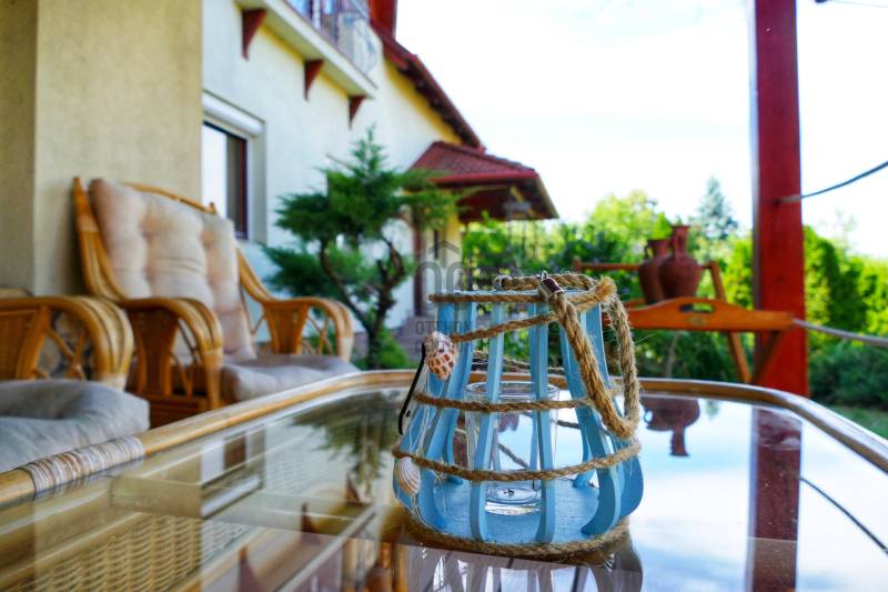 CSOBÁNKA szívében csendes utcában, panorámás kétgenerációs CSALÁDI HÁZ eladó!TELEK:- 721 nm -Keleti fekvésű -zsákutcában-panorámás- rendezett, ápolt -teraszos kialakítású-teraszok terméskövekkel tagolt, sziklakerti növényekkel díszített részekből áll.- körbe kerített- elektromos kapubeállás- díszkő burkolat a kaputól a ház bejáratáig- nyitott beálló - A telek adottságához igazodva, a kert első részében helyezkedik el.- jól szigetelt - téglából épült- a mennyezet felett ( föld) zöld tető,CSALÁDI HÁZ: - két generáció együtt élésére kiválóan alkalmas-külön bejáratú két tágas lakás- összközműves- mind a két lakás külön mérőórákkal rendelkezik-Az első házrész 1995-ben épült, a második házrész 2005-ben-együtt lett szigetelve a ház és színezve- a teljes tetőszerkezet 2005 -ben együtt épült.-cserép tető- klíma kiállás kiépítve1 LAKÁS:- 1995-ben épült - 93,4 nm- tégla építésű- a lakás alatt egy garázs lett építve, mely egy nagy vagy két kisebb autó tárolására alkalmas- a lakásba lépcsőn keresztül jutunk fel- bejárat előtt egy fedett terasz - tágas amerikai konyhás nappali- két nagy méretű keleti fekvésű szoba- kisebb lakószoba- 2 db fürdőszoba WC-vel- és egy háztartási helység lett kialakítva- fa nyílászárók - fűtés gázcirkóval, vagy vegyes tüzelésű kazánnal lehetséges2. lakás- 2005-ben épült- mediterrán jellegű, - 154,3 nm- tégla építésű- szigetelt- egyedi fa nyílászárók, dupla üveggel- belső kétszintes- keleti fekvésű- otthonos- tágas terek jellemzik a lakóteret- belmagassága 270 cm szinte minden helyiségben, a nappaliban 4 méteres belmagasság- fürdőszobákban dupla épített mosdó, sarokkád,- nappaliban kandalló- gázcirkó fűtés- nappaliból és a konyhából csodálatos kilátás Csobánkára és a hegyekre.A lakások külön- külön is eladóak, ügyvédi megosztással.Mind a két lakáshoz, garázs, önálló telek rész is tartozikIskola, óvoda, sportpálya, bevásárlási lehetőség , tömegközlekedés séta távolságban.